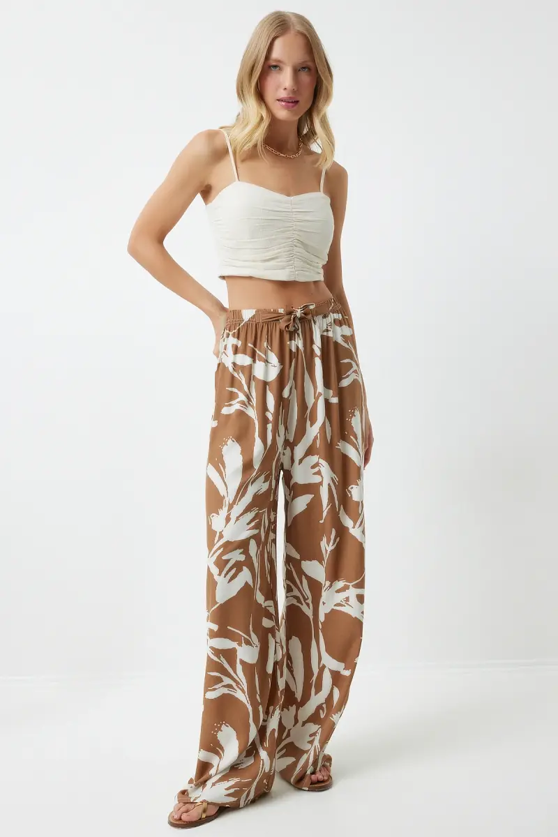 Bu ürün Trendyol tarafından gönderilecektir.Kampanya fiyatından satılmak üzere 100 adetten fazla stok sunulmuştur.İncelemiş olduğunuz ürünün satış fiyatını satıcı belirlemektedir.Bir ürün, birden fazla satıcı tarafından satılabilir. Birden fazla satıcı tarafından satışa sunulan ürünlerin satıcıları ürün için belirledikleri fiyata, satıcı puanlarına, teslimat statülerine, ürünlerdeki promosyonlara, kargonun bedava olup olmamasına ve ürünlerin hızlı teslimat ile teslim edilip edilememesine, ürünlerin stok ve kategorileri bilgilerine göre sıralanmaktadır.Bu üründen en fazla 10 adet sipariş verilebilir. 10 adedin üzerindeki siparişleri Trendyol iptal etme hakkını saklı tutar. Belirlenen bu limit kurumsal siparişlerde geçerli olmayıp, kurumsal siparişler için farklı limitler belirlenebilmektedir.15 gün içinde ücretsiz iade. Detaylı bilgi için [page="return_conditions"]tıklayın .Basic koleksiyonunun şık ve rahat bir parçası olarak tasarlanan bu pantolon, her ortamda stilinizi tamamlarYüksek kaliteli 100% viskoz materyali sayesinde yumuşak dokusuyla gün boyu konfor sunarHavuç/şalvar silueti ile modern ve trend bir görünüm sağlar, hareket özgürlüğü tanırPalazzo kalıbı sayesinde geniş kesimiyle rahat bir kullanım sunarken, şık duruşunu korurUzun boy tasarımı ile bacakları olduğundan daha uzun gösterir ve zarif bir siluet oluştururNormal bel yüksekliği, gün içindeki rahatlığı artırırken şıklığınızdan ödün vermezTüm yaş gruplarına hitap eden tasarımıyla geniş bir kullanıcı yelpazesine sahiptirDokuma kumaş tipi dayanıklılığı artırırken, dijital baskı tekniği desenlerin canlılığını uzun süre korumasına yardımcı olurBoru paça tasarımı modern ve zamansız bir görünüm kazandırırken, her tür ayakkabı ile kolayca kombinlenebilirYıkama talimatlarına uygun bakım ile pantolonunuzun ilk gün