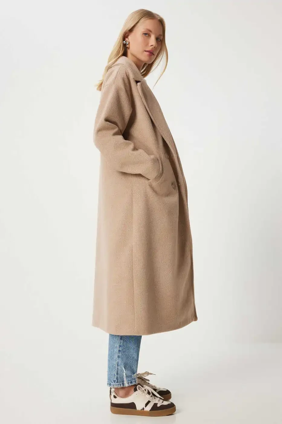 Kadın Kaşe Kaban: Bisküvi Kruvaze Yaka Şıklığı | Soğuk Hava Koruması
