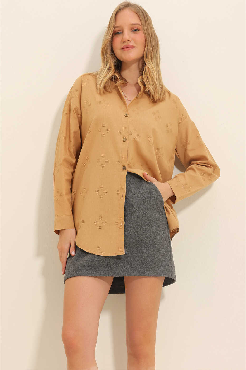 Kadın bisküvi motifli oversize keten gömlek ALC-X11288 ile sıcak günlerde hem şık hem de rahat olmanın keyfini çıkarın!