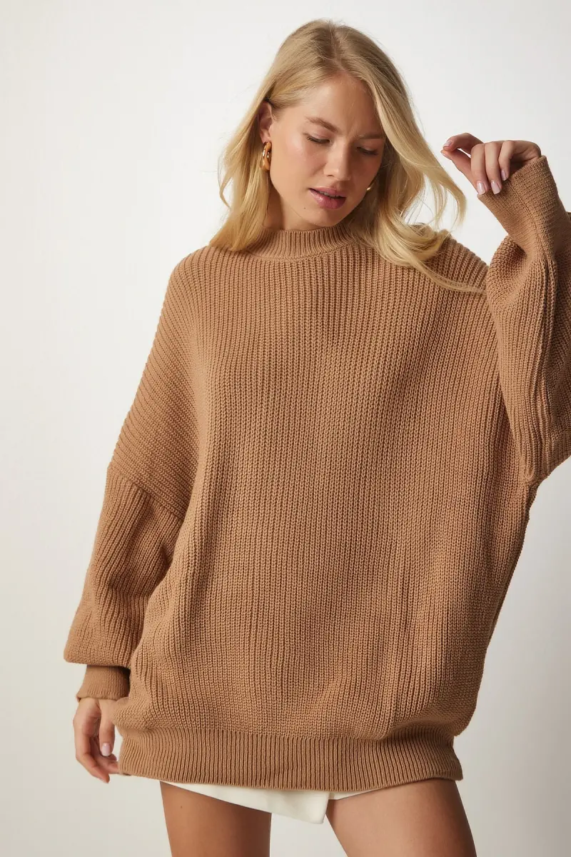 Kadın Bisküvi Oversize Basic Triko Kazak mx00126-Bisküvi