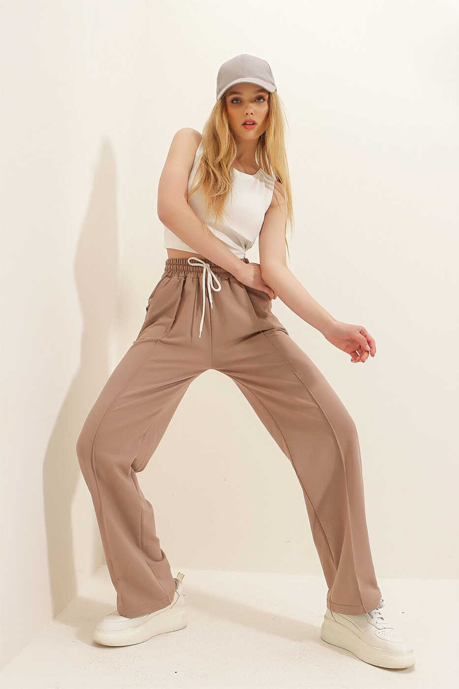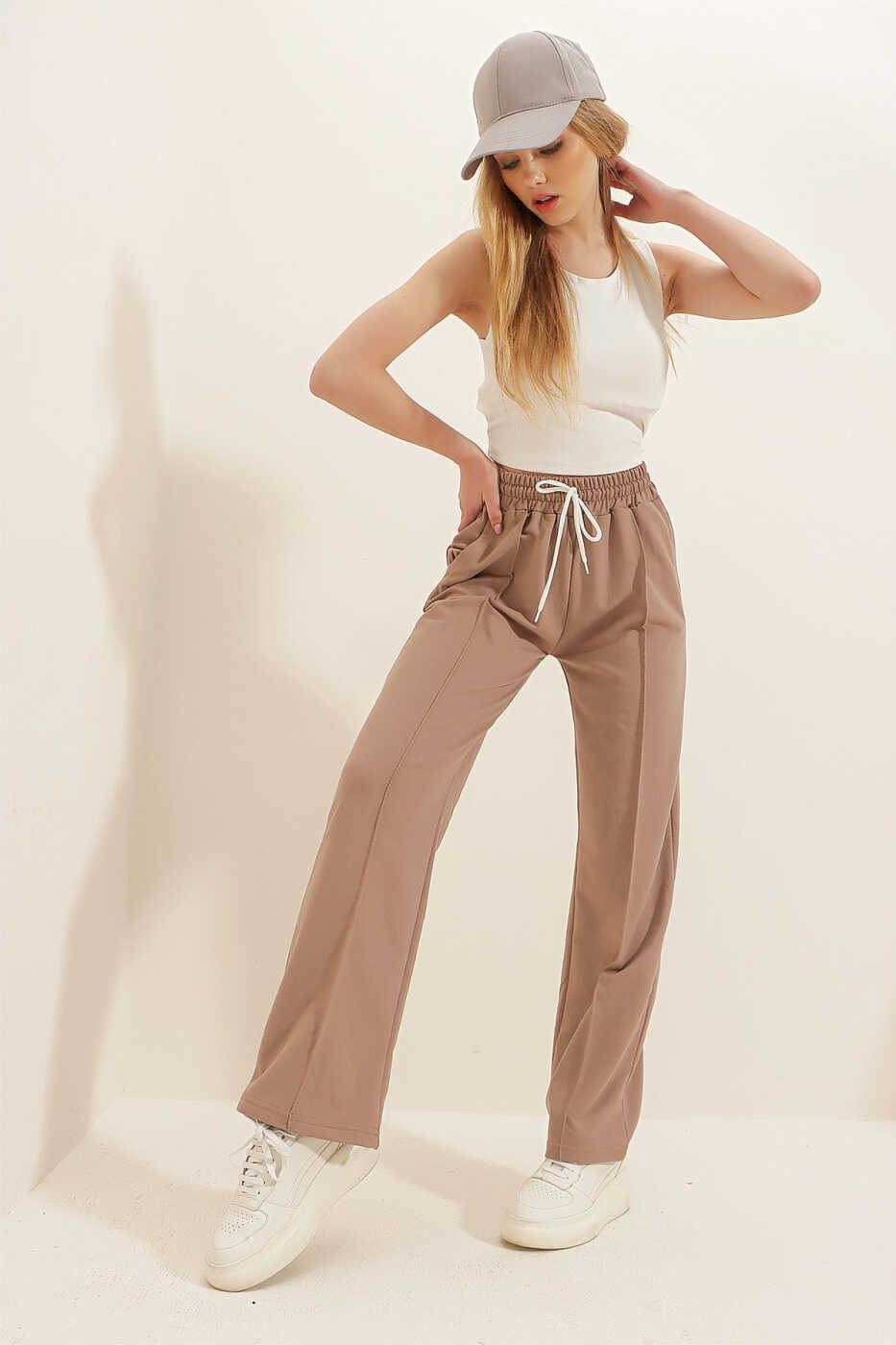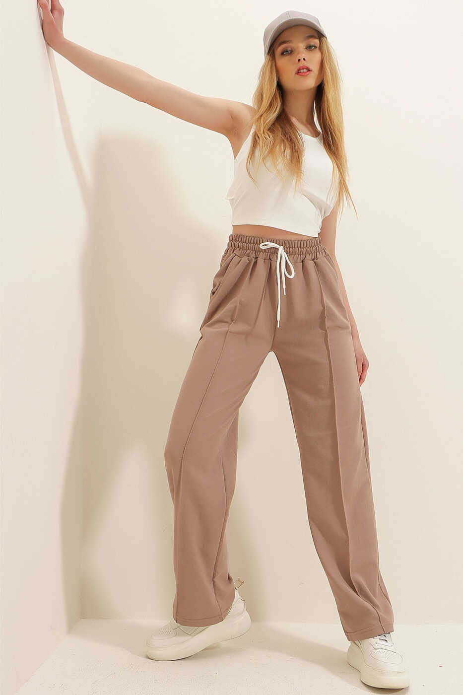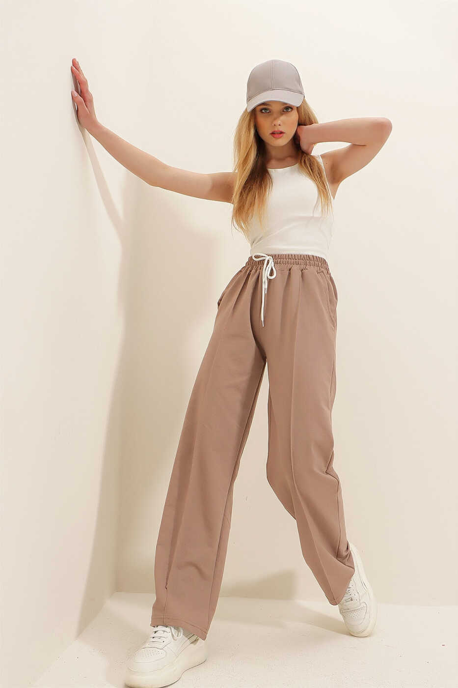 Get ready to feel comfortable all day long with the Women's Biscuit High Waist Front Zipper Wide Leg Double Pocket Sweatpants ALC-X7957, offering both comfort and style. These sweatpants, which hug your body with their high waist and wide legs, allow you to move freely while exercising or in everyday life. The stylish zippers on the front add a modern touch to the style, taking your everyday style to the next level.