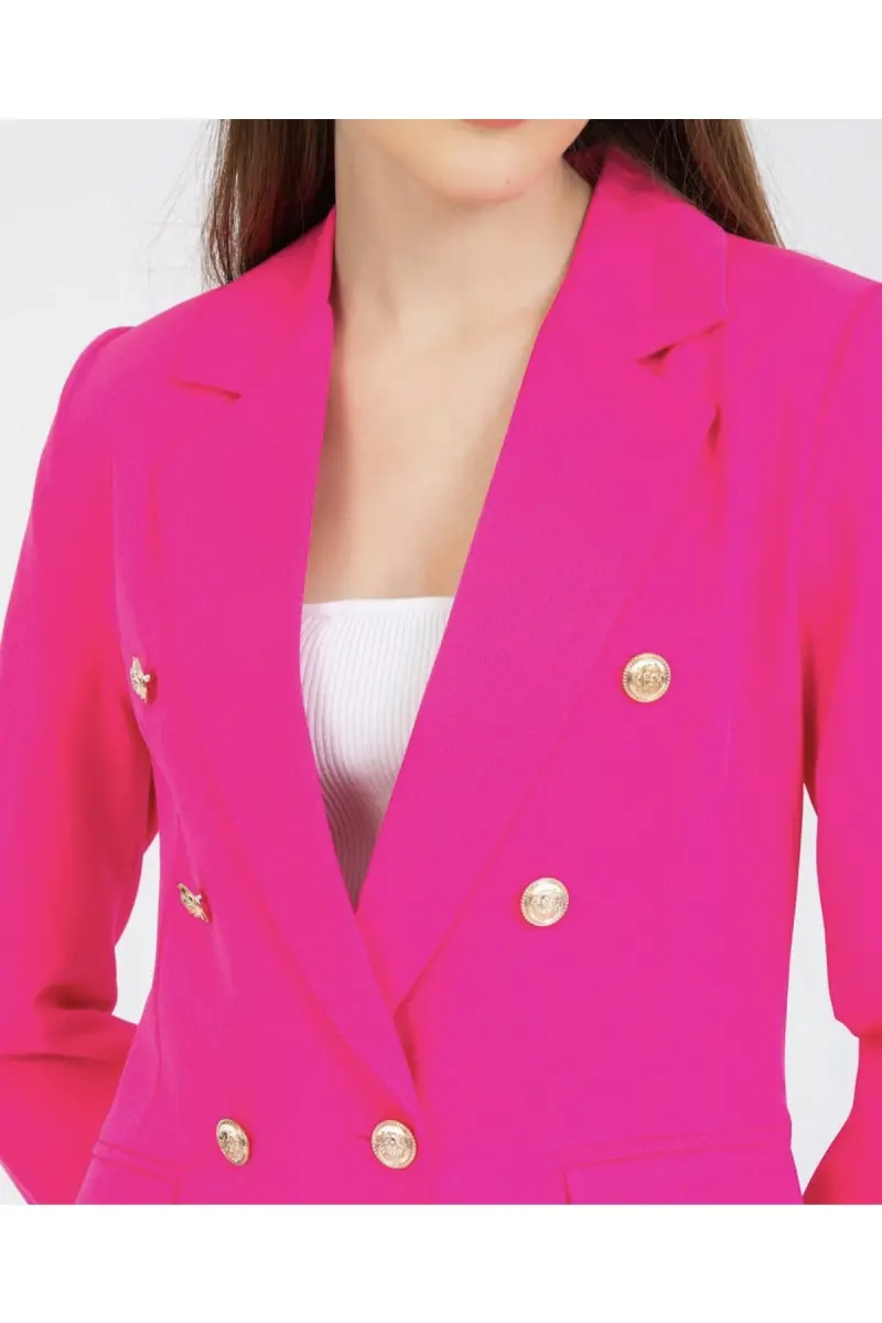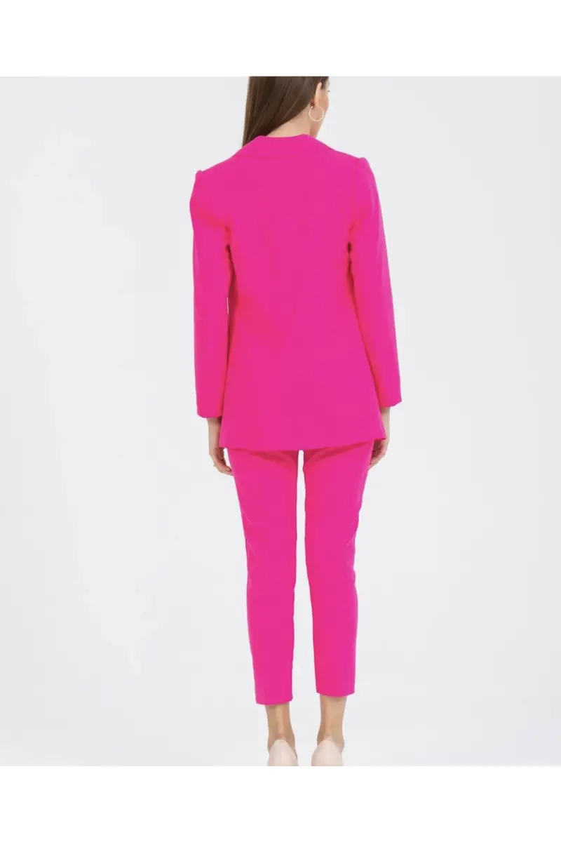 Kadın Blazer Ceket Kemerli Pantolon Takım Fuşya-Fuşya