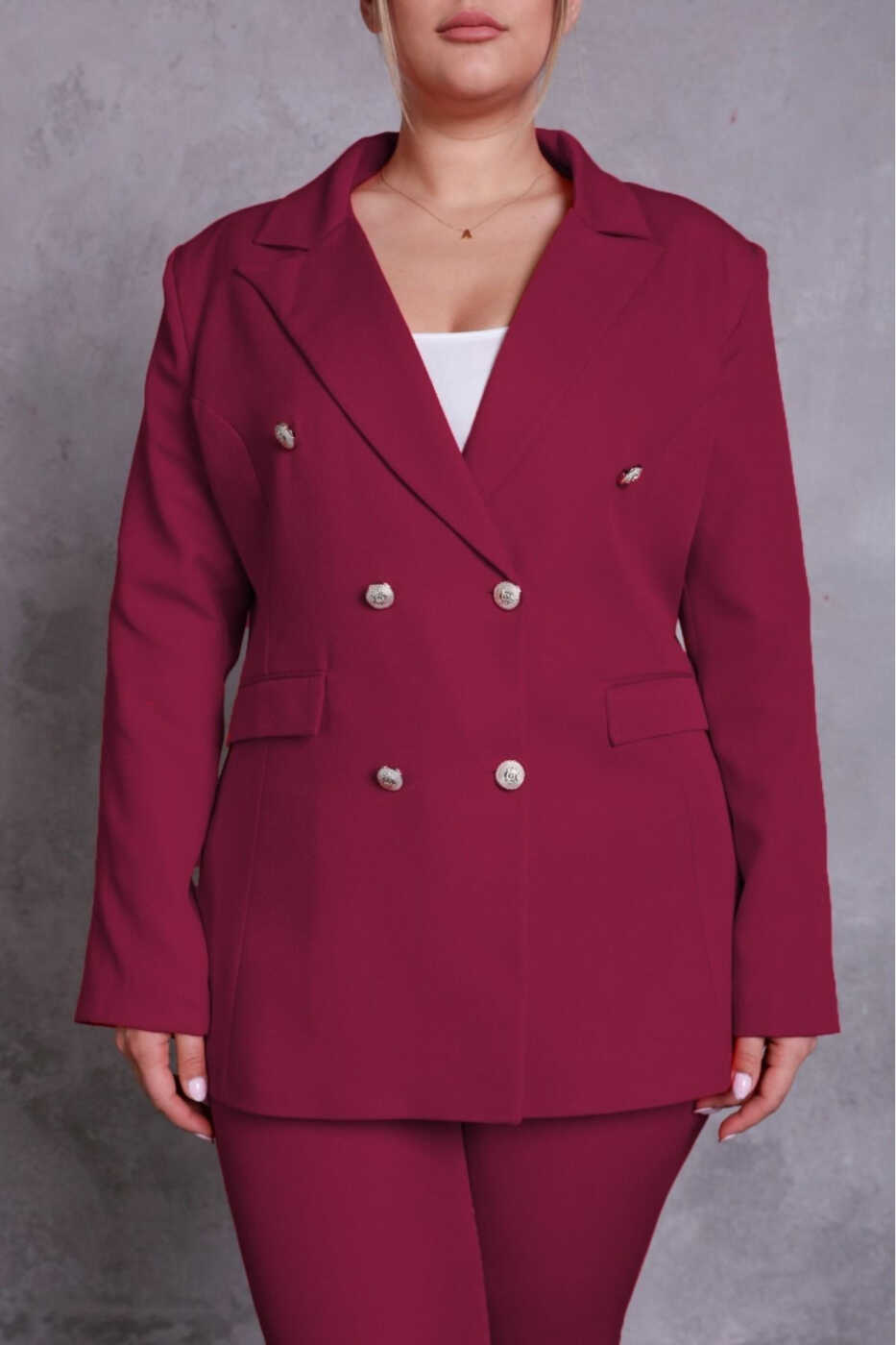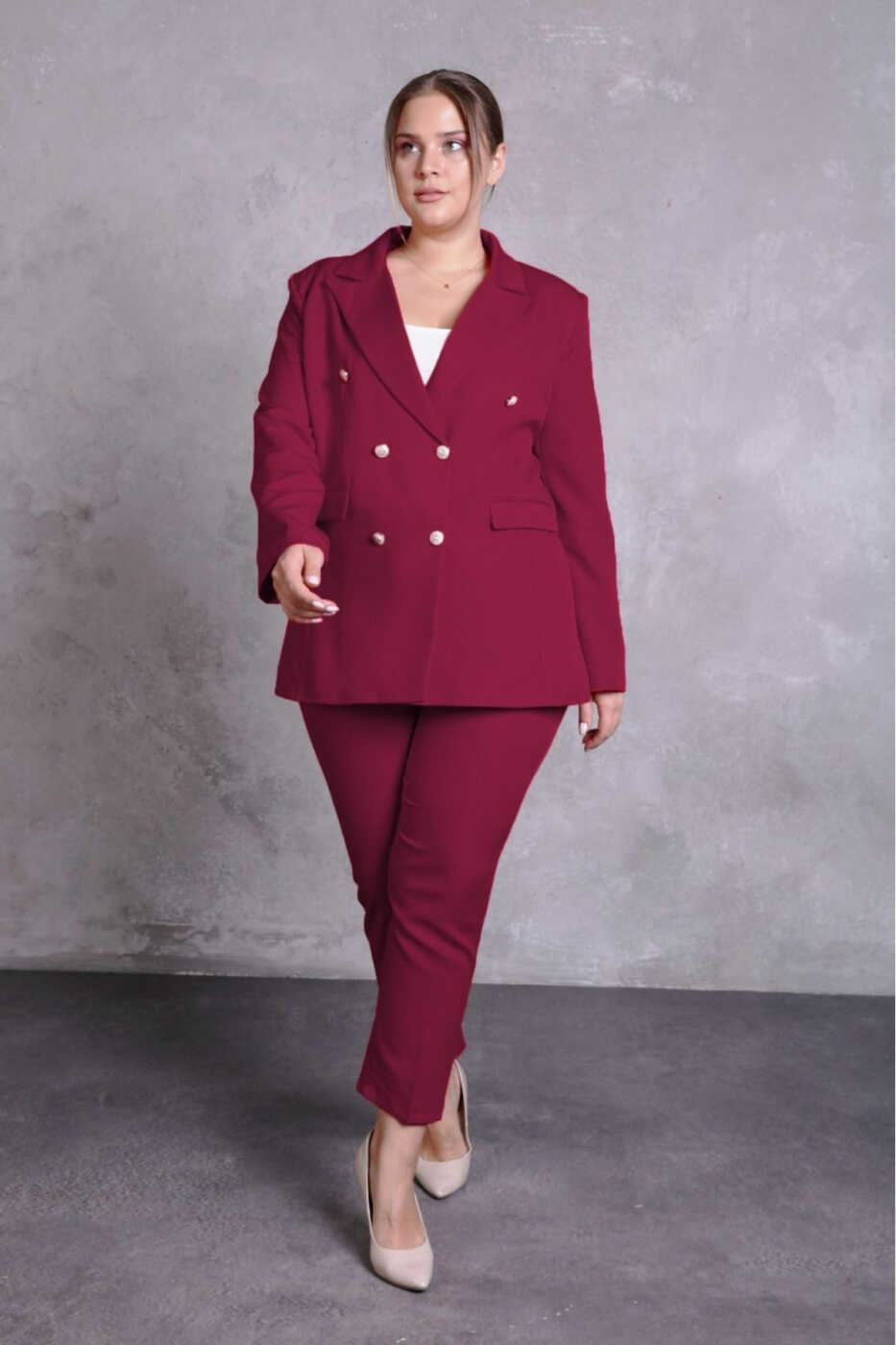 Şıklığı ve zarafeti bir araya getiren bu takım elbise, her kadının gardırobunda olması gereken bir parça. Bordo blazer ceket, zarif bir şekilde tasarlanmış ve vücut hatlarını mükemmel bir şekilde vurgulayarak stil sahibi bir görünüm sunuyor. Kemerli cepleri ve ince kesimiyle ceket, hem şık hem de pratik bir seçenek.