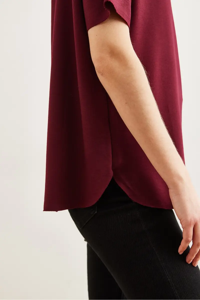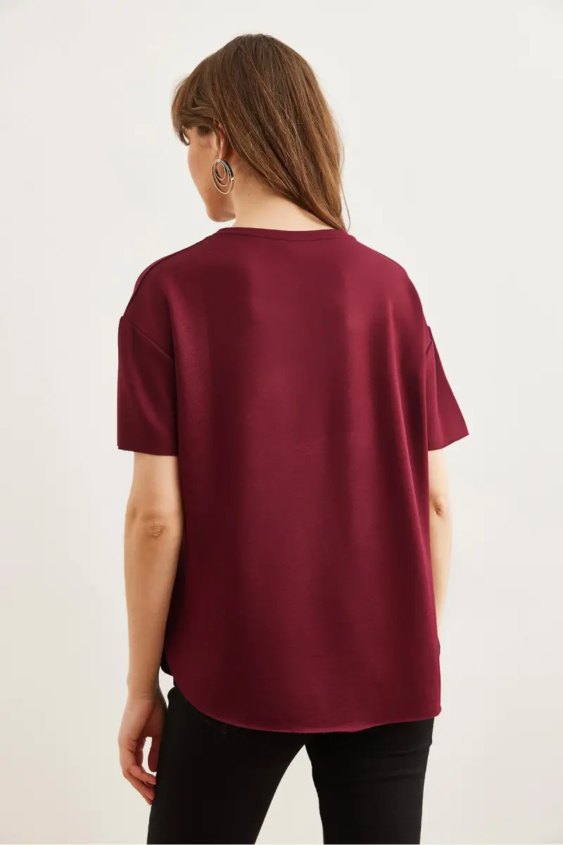 Kadın Bordo Modal Tuşeli Yumuşak Dokulu Altı Oval Tişört TSH-19000771-Bordo