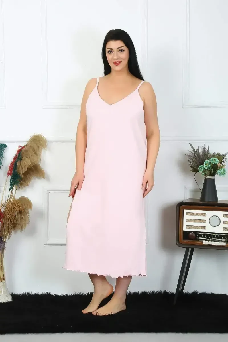 **Женская длинная ночная сорочка из хлопка большого размера с бретельками 12100**