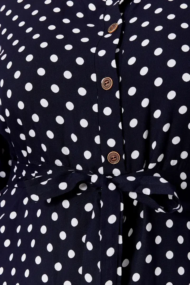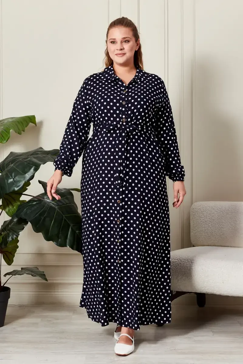 Если вы ищете платье, которое заставит вас чувствовать себя особенной, вы пришли по адресу! Женское платье в горошек больших размеров идеально подходит для любого размера благодаря своему элегантному дизайну и комфортной ткани. Будь то шикарный ужин, повседневная жизнь или особенный день, выглядите безупречно в этом платье.