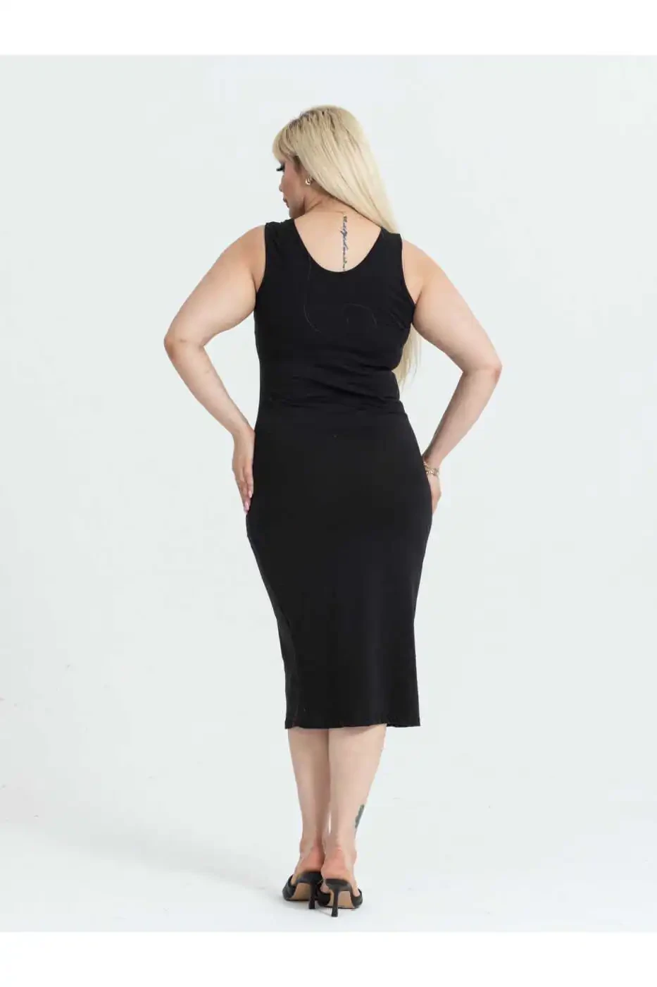 Büyük Beden Sıfır Kol Esnek Viskon Elbise - Şıklık ve Konfor Bir Arada