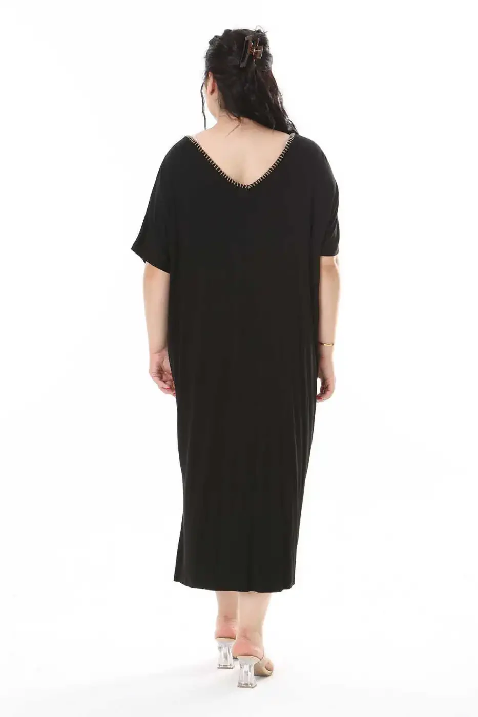 Uslub va qulaylikni birlashtirgan bu ko'ylak sizning garderobingizning ajralmas qismi bo'lishga mo'ljallangan! Katta hajmdagi ayollar uchun maxsus mo'ljallangan bu ko'ylak qora rangi va oqlangan tikilgan tafsilotlari bilan ajoyib ko'rinishga ega. Likrali viskoz matodan tikilgan ko'ylak tanangizga mukammal darajada moslashib, qulay kiyish tajribasini taqdim etadi. Kundalik hayotda, maxsus kunlarda yoki biznes hayotda zamonaviy va oqlangan ko'rinishga ega bo'lish uchun ideal tanlov.