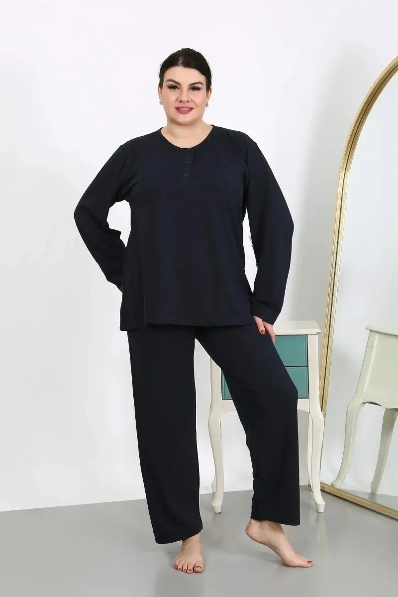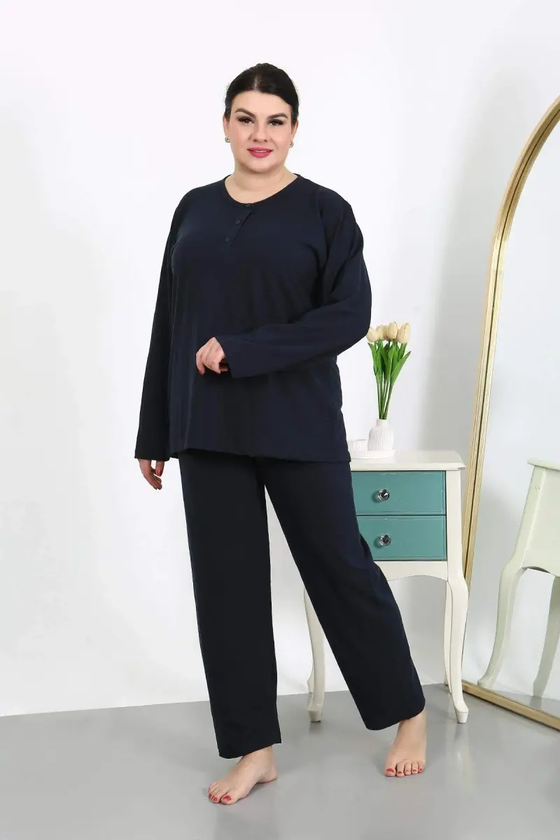 Kadın Büyük Beden Uzun Kol Penye Pijama Takımı Lacivert 202501