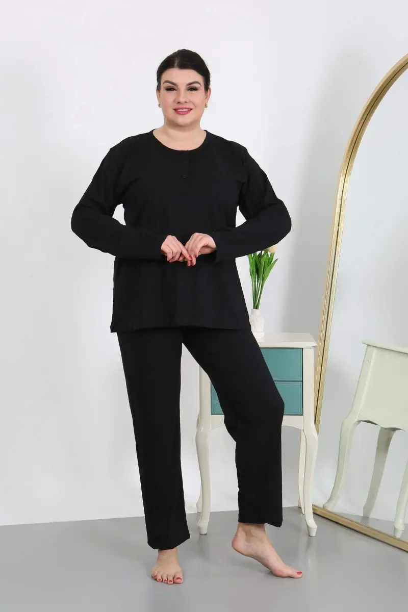 Kadın Büyük Beden Uzun Kol Penye Pijama Takımı Siyah 202501