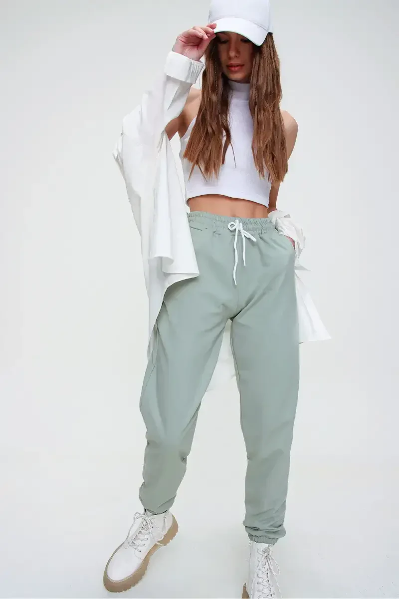 Познакомьтесь с женскими базовыми спортивными штанами цвета зеленого чая с эластичной талией и манжетами, сочетающими в себе комфорт и стиль! Эти спортивные штаны обеспечат вам непревзойденный комфорт в повседневной жизни и во время занятий спортом, а цвет зеленого чая добавит свежий штрих вашему стилю. Этот продукт, который является кандидатом на то, чтобы стать незаменимой частью вашего гардероба, - это вариант, который вы можете с комфортом выбрать как для отдыха дома, так и для встреч с друзьями.