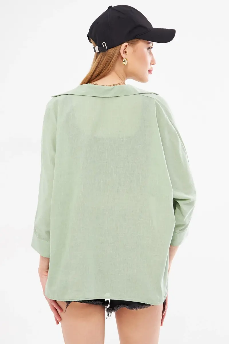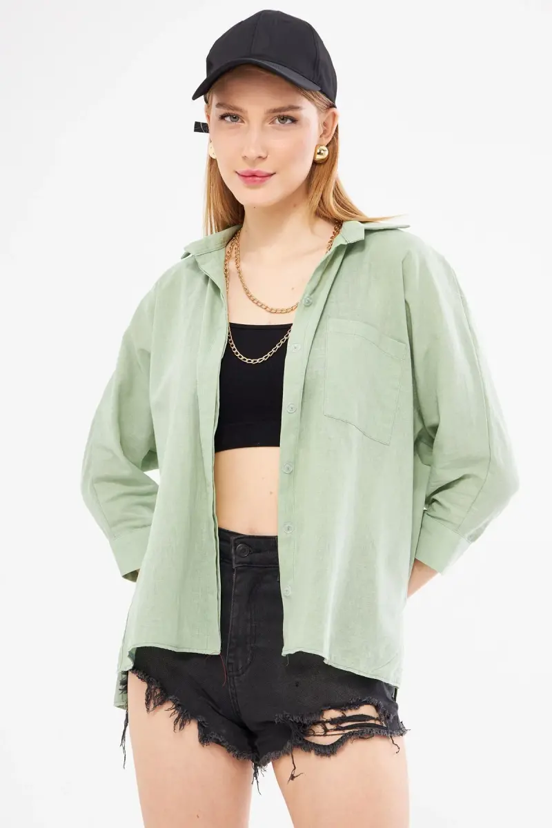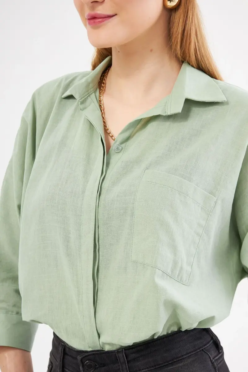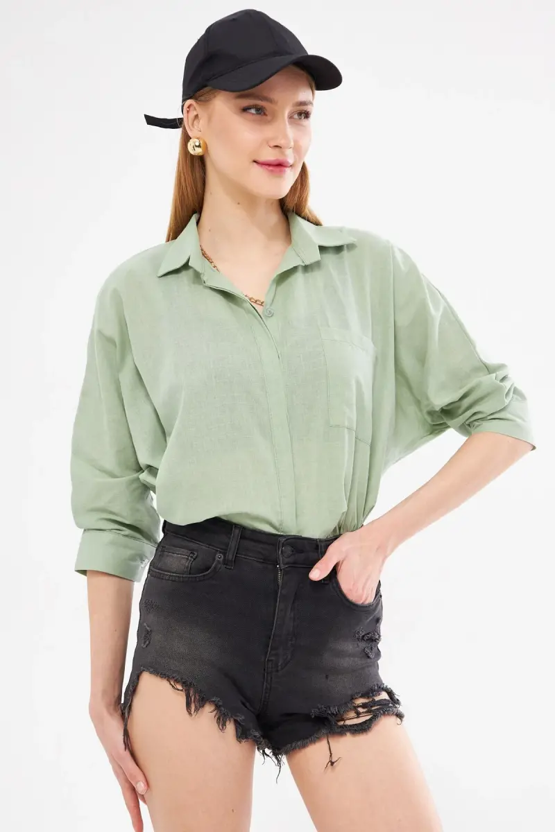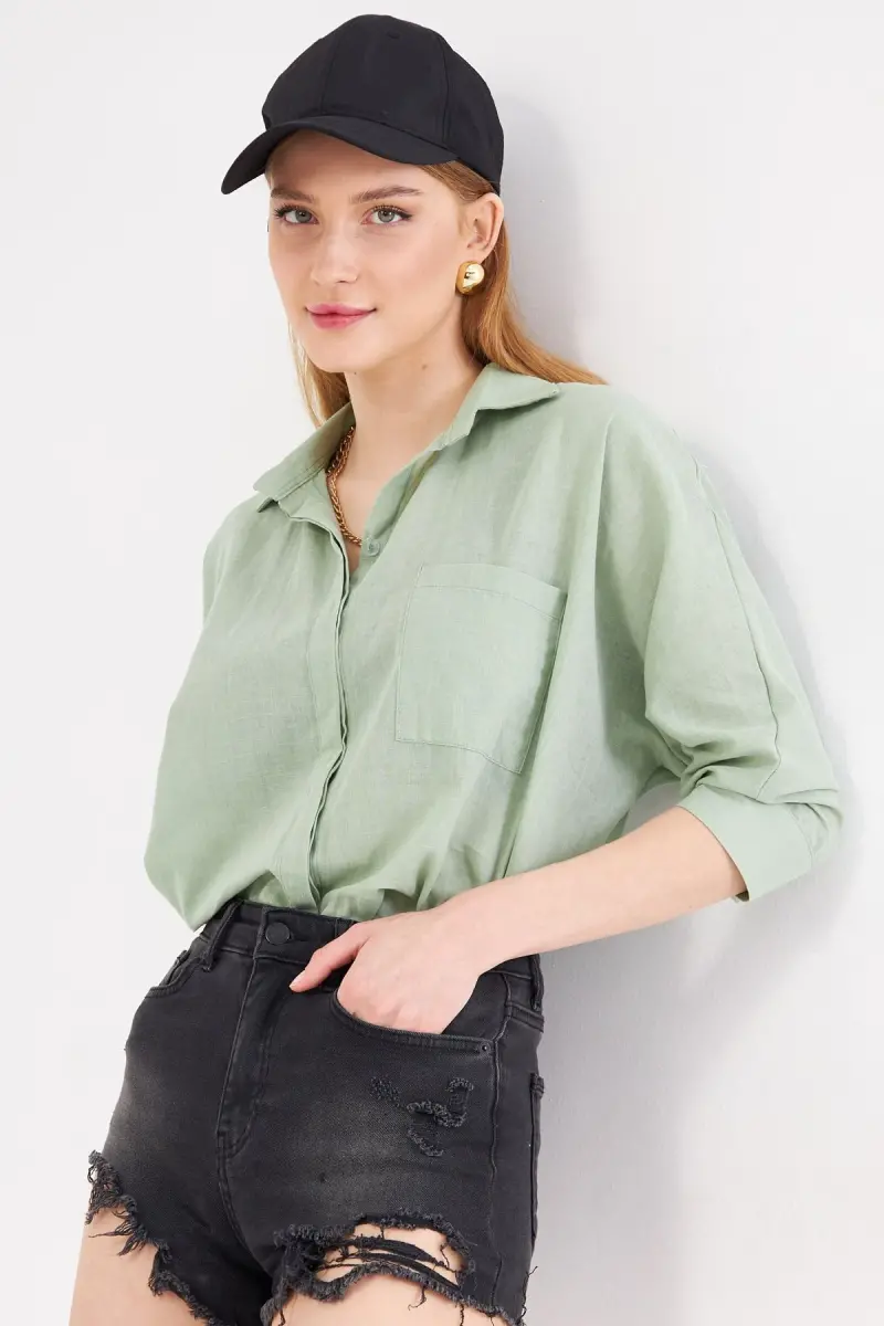 Kadın Çağla Yeşili Cepli Salaş Keten Gömlek ARM-21Y001035-Çağla Yeşili
