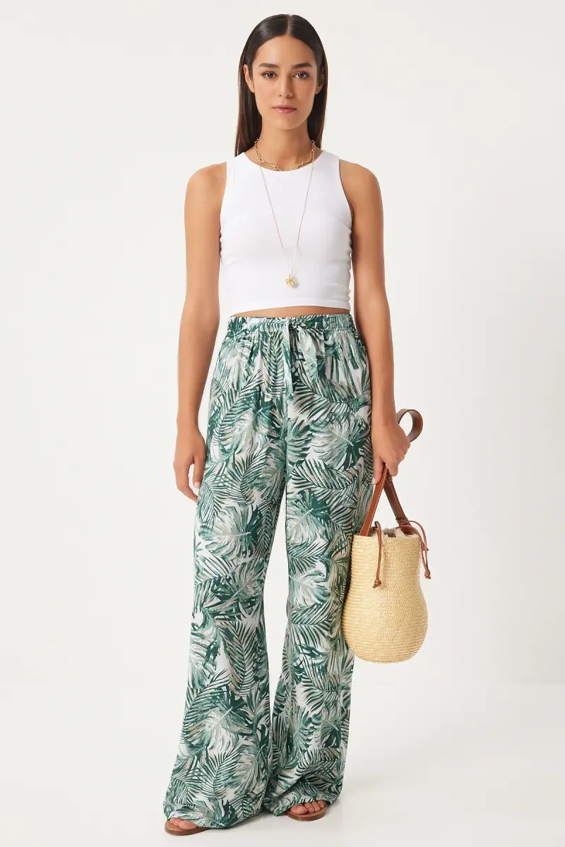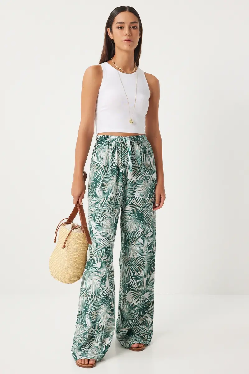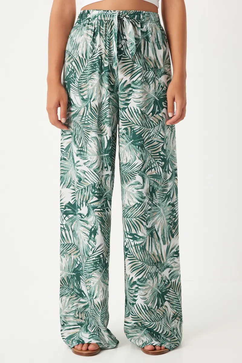 Bu ürün Trendyol tarafından gönderilecektir.Kampanya fiyatından satılmak üzere 5 adetten az stok bulunmaktadır.Bir ürün, birden fazla satıcı tarafından satılabilir. Birden fazla satıcı tarafından satışa sunulan ürünlerin satıcıları ürün için belirledikleri fiyata, satıcı puanlarına, teslimat statülerine, ürünlerdeki promosyonlara, kargonun bedava olup olmamasına ve ürünlerin hızlı teslimat ile teslim edilip edilememesine, ürünlerin stok ve kategorileri bilgilerine göre sıralanmaktadır.Bu üründen en fazla 10 adet sipariş verilebilir. 10 adedin üzerindeki siparişleri Trendyol iptal etme hakkını saklı tutar. Belirlenen bu limit kurumsal siparişlerde geçerli olmayıp, kurumsal siparişler için farklı limitler belirlenebilmektedir.15 gün içinde ücretsiz iade. Detaylı bilgi için [page="return_conditions"]tıklayın .Orta kalınlıkta kumaşı ile mevsim geçişlerinde ideal bir konfor sunarÇağla yeşili ekru desenli tasarımıyla göz alıcı bir görünüm kazandırırPalazzo kesimi sayesinde rahat hareket etme özgürlüğü sağlar ve şık bir siluet oluştururHavuç/şalvar silueti, modern ve trend bir stil vurgusu yaparBasic koleksiyonun sadeliğiyle her türlü üst giyimle kolayca kombinlenebilirType 1 yıkama talimatına uygun şekilde bakımı kolaydıruzun ömürlü kullanım sunarTüm yaş gruplarına hitap eden tasarımıyla geniş bir kullanıcı yelpazesine sahiptirBoru paça kesimi, zamansız bir şıklık katarken, uzun boyu ile bacakları olduğundan daha uzun gösterirDijital baskı tekniği ile üretilen desenler canlı ve net görünüm sağlarNormal bel yüksekliği, gün boyu rahatlık sunarken vücut hatlarını nazikçe sararŞık ortamlarda dahi rahatlıkla tercih edilebilecek zarif bir