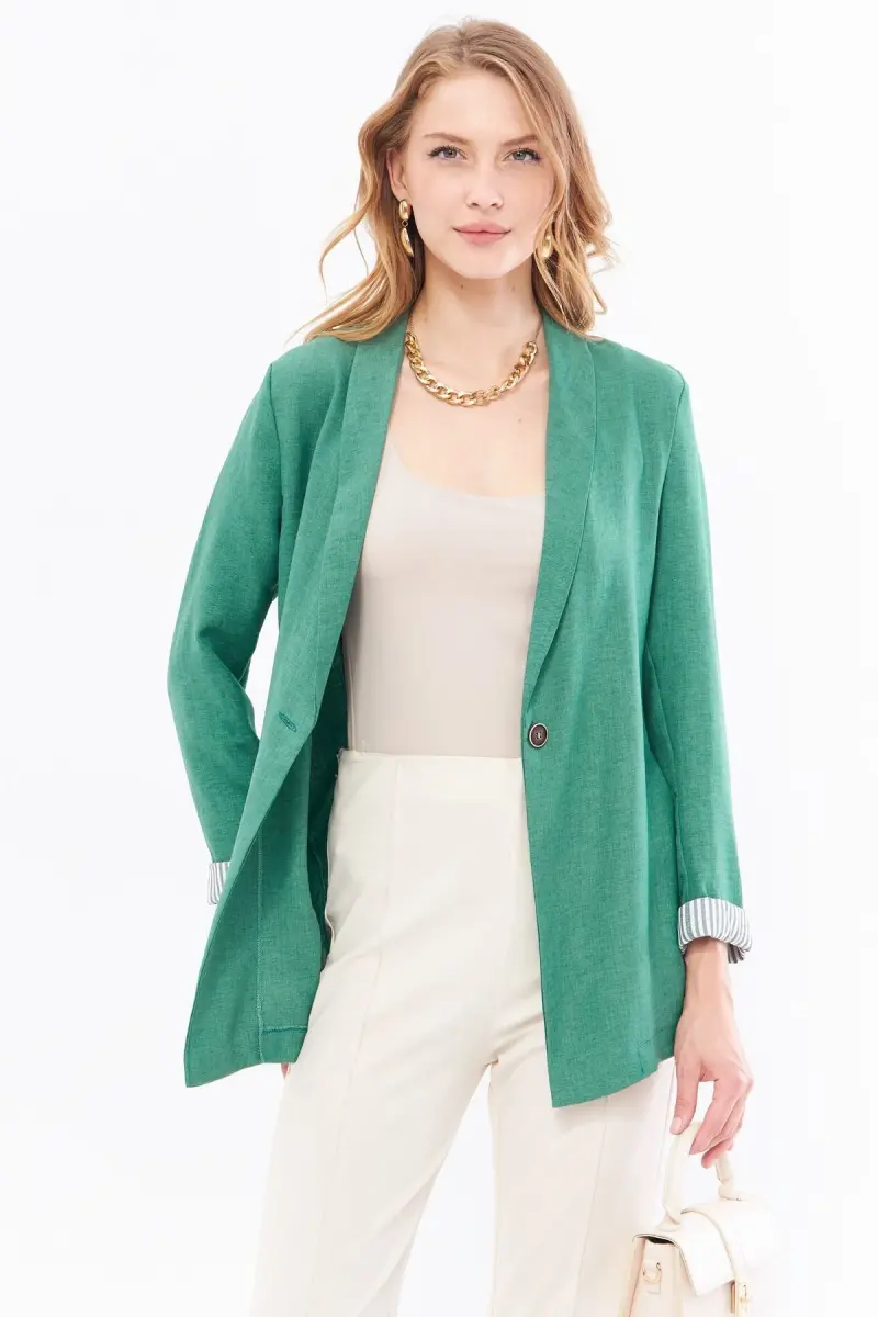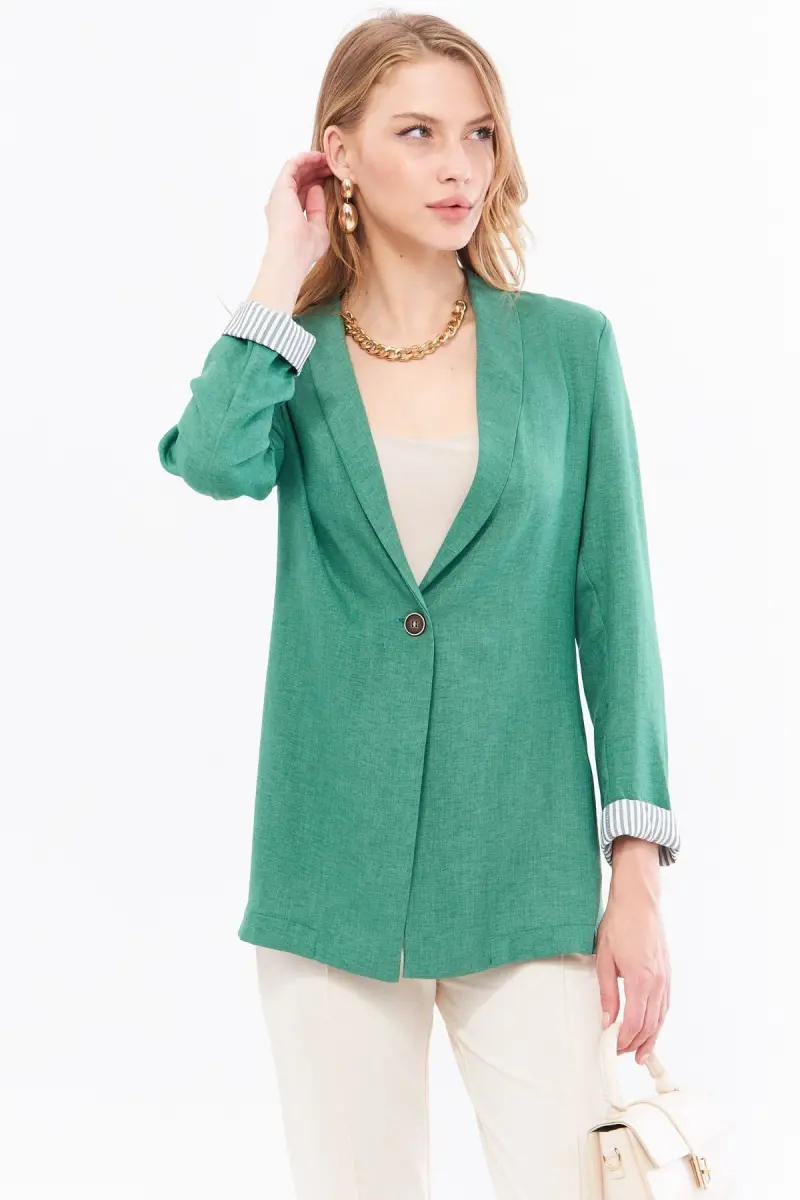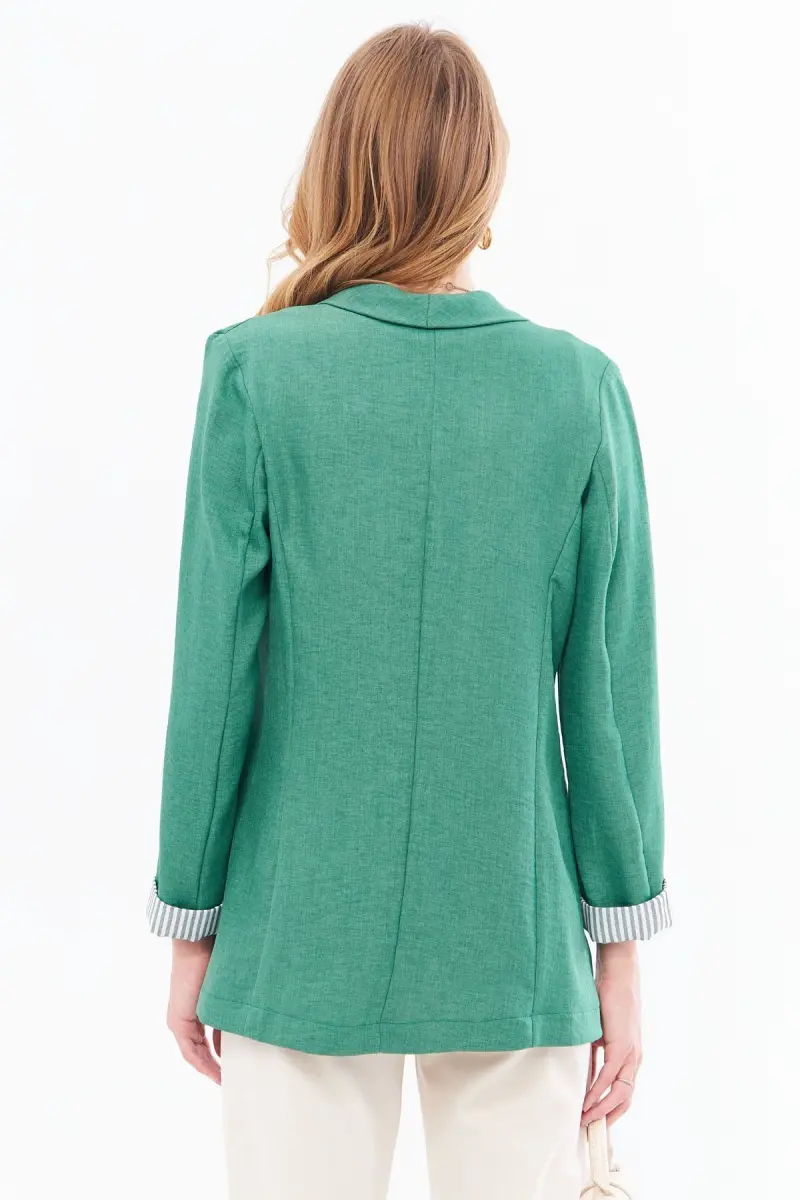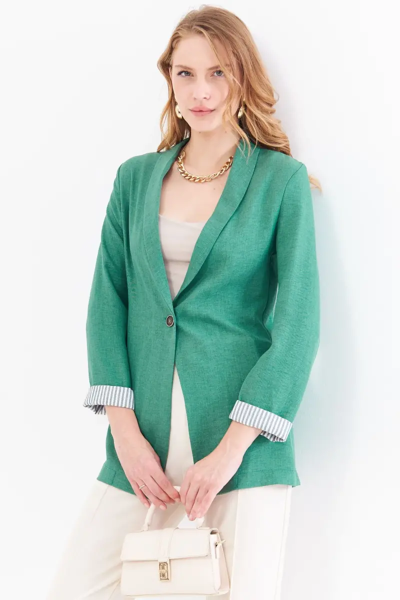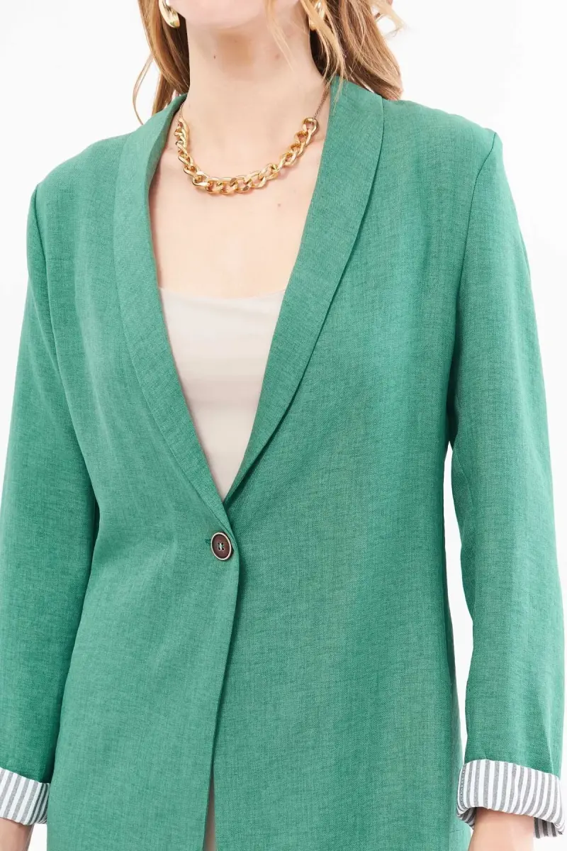 Kadın Çağla Yeşili Kol İçi Çizgili Tek Düğmeli Ceket ARM-22K001122-Çağla Yeşili