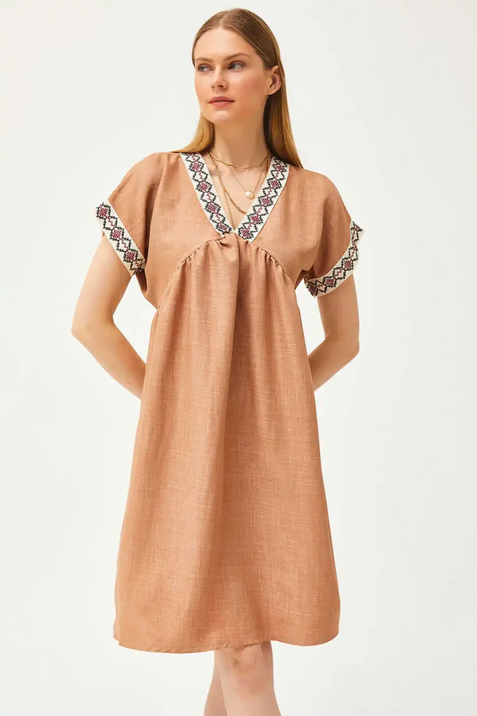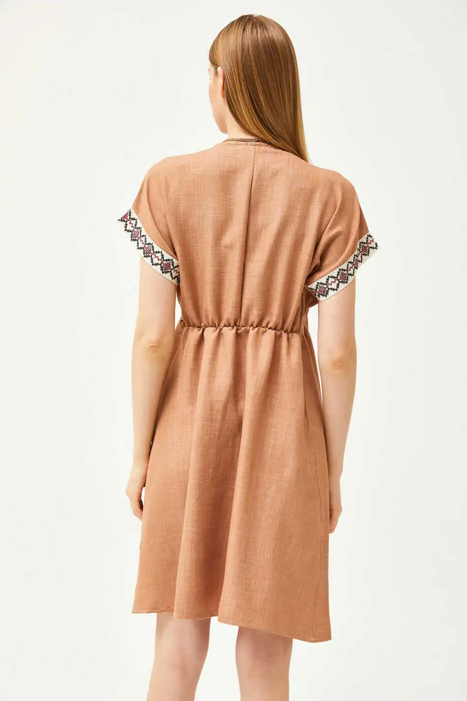 Kadın Camel Yaka Dantelli Keten İçerikli Elbise ELB-19002077, mükemmel kalıbı ve yüksek kaliteli kumaşıyla vücudunuza kusursuz bir şekilde oturur. Rahatlığı ve şıklığı bir arada arayan kadınlar için mükemmel bir tercihtir.