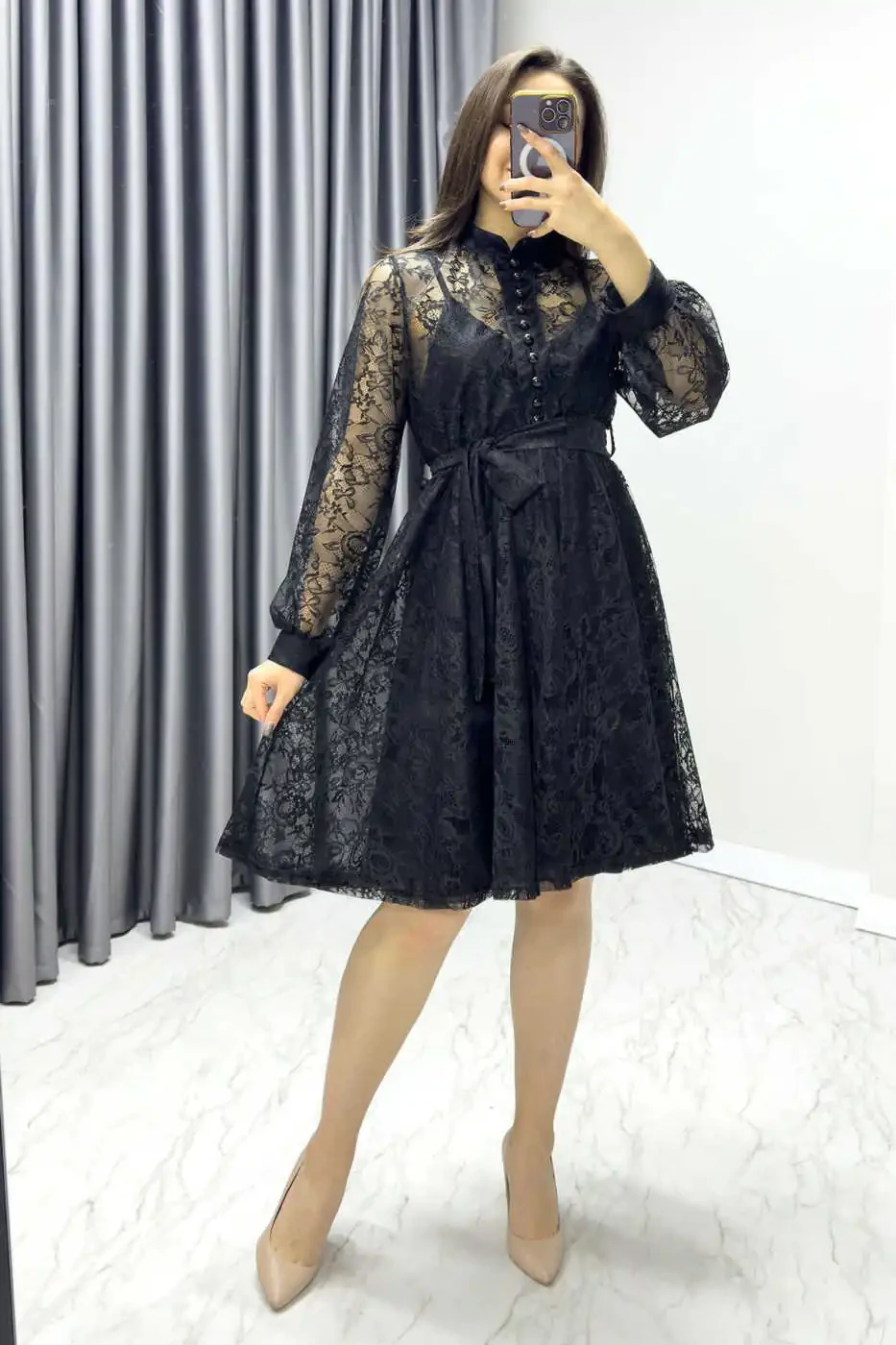 Meet the elegant and stylish Women's Bell Sleeve French Guipure Buttoned Plus Size Evening Dress! Available in beige, green, black, white, and red, this dress will add a sophisticated touch to your wardrobe and become an indispensable part of your special occasions. Made from French guipure fabric, the dress offers comfortable all-day wear with its lined interior. The bell cut gently hugs your body, creating a perfect silhouette, while the elegant button details on the chest add to its elegance. Available in plus sizes, the dress suits every body type and is ideal for weddings, engagements, graduation ceremonies, parties, and other special events. Order this dress now and enjoy its flawless elegance with its light and breathable fabric that will make you feel special. A perfect choice for those seeking both comfort and style, this evening dress will give you unforgettable moments. With its variety of color options, this magnificent dress will suit every taste and style and is destined to become your wardrobe's new favorite!