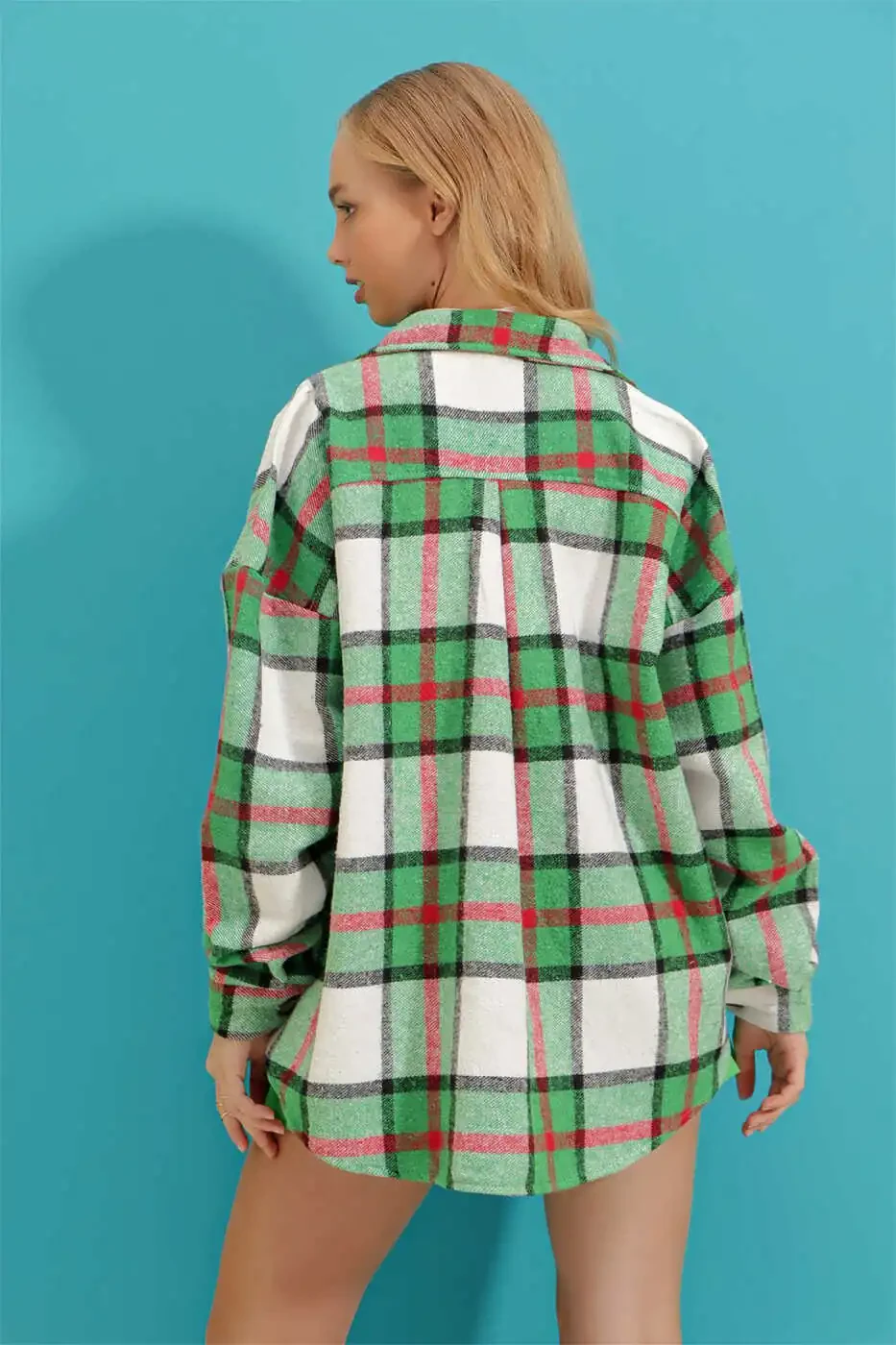Şıklığı ve rahatlığı bir araya getiren, göz alıcı bir tarza sahip olmak isteyen kadınlar için tasarlanmış bir ürün olan Kadın Canlı Yeşil Ekose Desenli Kaşe Pamuklu Oversize Safari Ceket Gömlek ALC-X7142, gardırobunuzun vazgeçilmezi olacak.