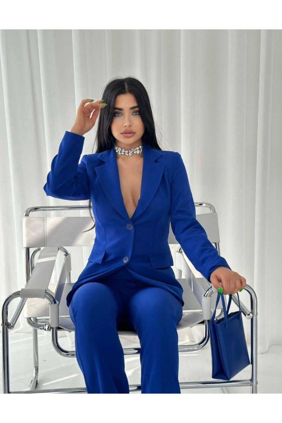 Kadın Ceket Pantolon Takım Saks Mavi - Zarif ve Şık Bir Görünüm