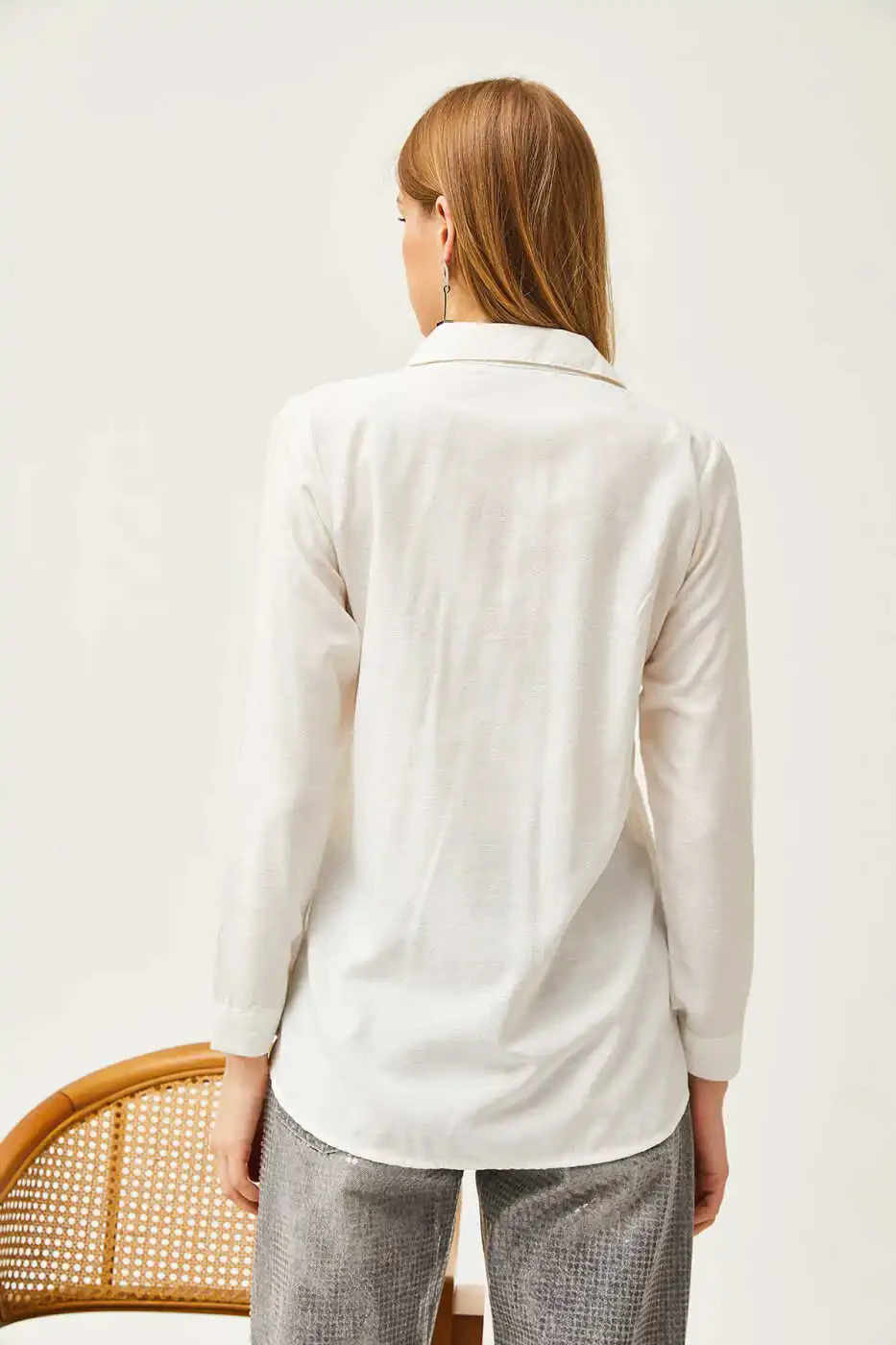Yumuşak dokusuyla konforlu bir kullanım sunan gömlek, günlük hayattan özel günlere kadar her an şık görünmenizi sağlayacak. İş toplantılarından akşam yemeklerine kadar birçok ortamda rahatlıkla tercih edebileceğiniz bu gömlek, zarif bir tarzı benimseyen kadınlar için mükemmel bir seçim.