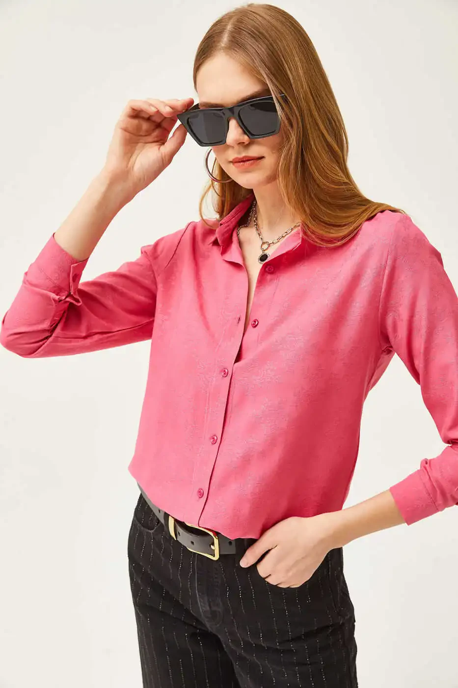 Nafislik va jozibadorlikni birlashtirgan Ayollar uchun gulli fuşya rangli jakkardli atlasli detallar bilan to'qilgan ko'ylak yordamida o'zingizni ifoda eting! Fuşya rangi va gulli naqsh bilan diqqatni jalb qiladigan bu ko'ylak kundalik kombinlaringizga jonlilik baxsh etadi. Jakkardli to'qima matoni va atlasli detallar bilan o'zingizning nafisligingizni namoyish eting. Erkin kesim va nozik to'qimasi tufayli kun bo'yi qulay foydalanish imkonini beradi.