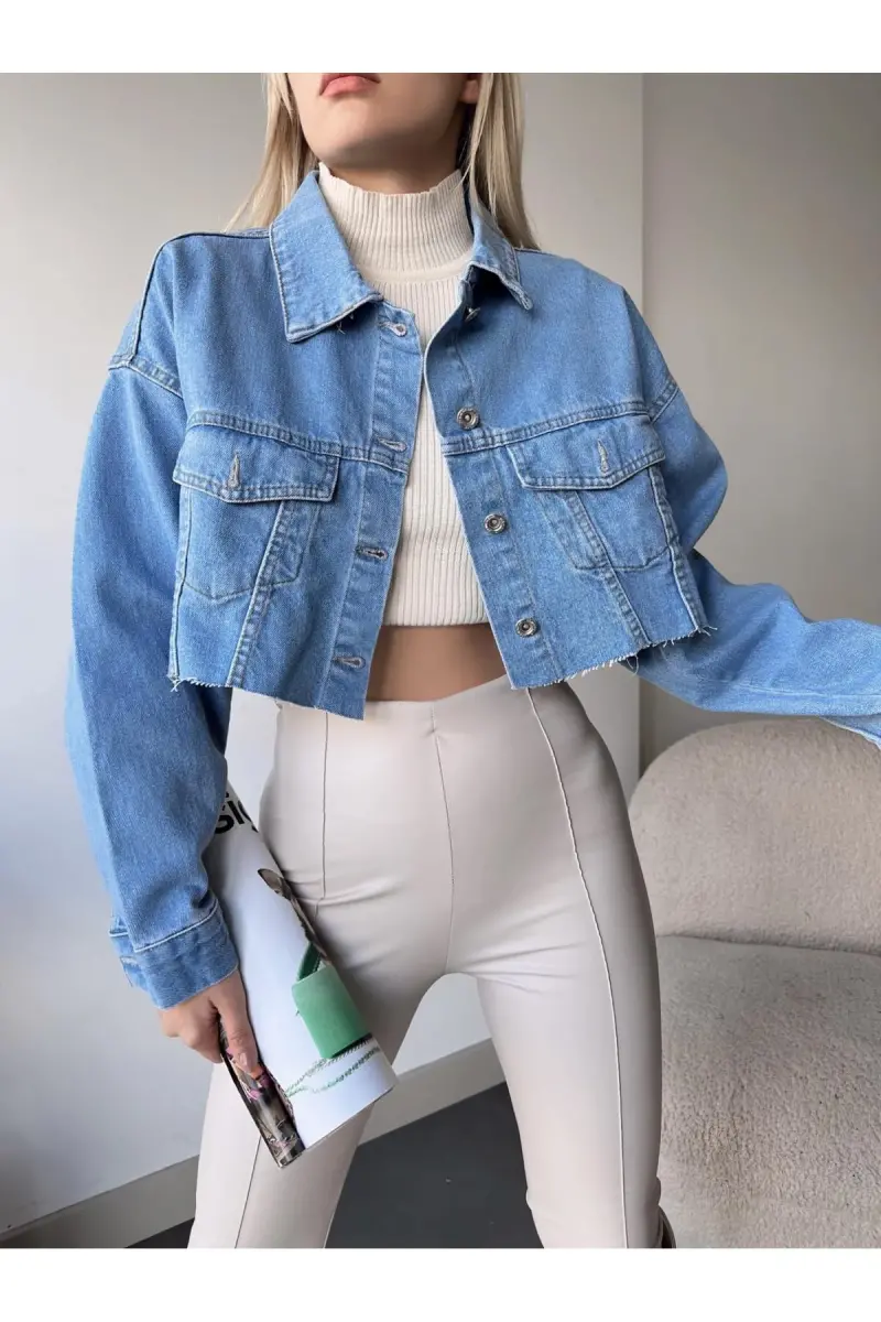 Bu ürün ÇEÇİM tarafından gönderilecektir.Kampanya fiyatından satılmak üzere 5 adetten az stok bulunmaktadır.Bir ürün, birden fazla satıcı tarafından satılabilir. Birden fazla satıcı tarafından satışa sunulan ürünlerin satıcıları ürün için belirledikleri fiyata, satıcı puanlarına, teslimat statülerine, ürünlerdeki promosyonlara, kargonun bedava olup olmamasına ve ürünlerin hızlı teslimat ile teslim edilip edilememesine, ürünlerin stok ve kategorileri bilgilerine göre sıralanmaktadır.Bu üründen en fazla 10 adet sipariş verilebilir. 10 adedin üzerindeki siparişleri Trendyol iptal etme hakkını saklı tutar. Belirlenen bu limit kurumsal siparişlerde geçerli olmayıp, kurumsal siparişler için farklı limitler belirlenebilmektedir.15 gün içinde ücretsiz iade. Detaylı bilgi için [page="return_conditions"]tıklayın .Bu kadın çift cepli lazer kesim crop denim ceket, günlük giyimde şıklığı ve rahatlığı bir arada sunarDüz deseniyle zamansız bir stil oluştururken, gömlek yakası ve düğmeli kapama şekliyle klasik detaylara sahiptirDenim materyali orta kalınlıkta olup, her mevsim rahatlıkla kullanılabilirCrop boyu ve oversize silueti ile genç ve dinamik bir görünüm sağlarStandart kol boyu, günlük aktivitelerde maksimum hareket özgürlüğü sunarÇift cepli tasarımı hem fonksiyonellik katar hem de stilinizi tamamlarYoung koleksiyonunun parçası olan bu ceket, genç ruhunuza uygun modern ve trend bir dokunuş eklerYıkama talimatlarına uygun şekilde bakım yapıldığında uzun süre ilk günkü gibi kalır