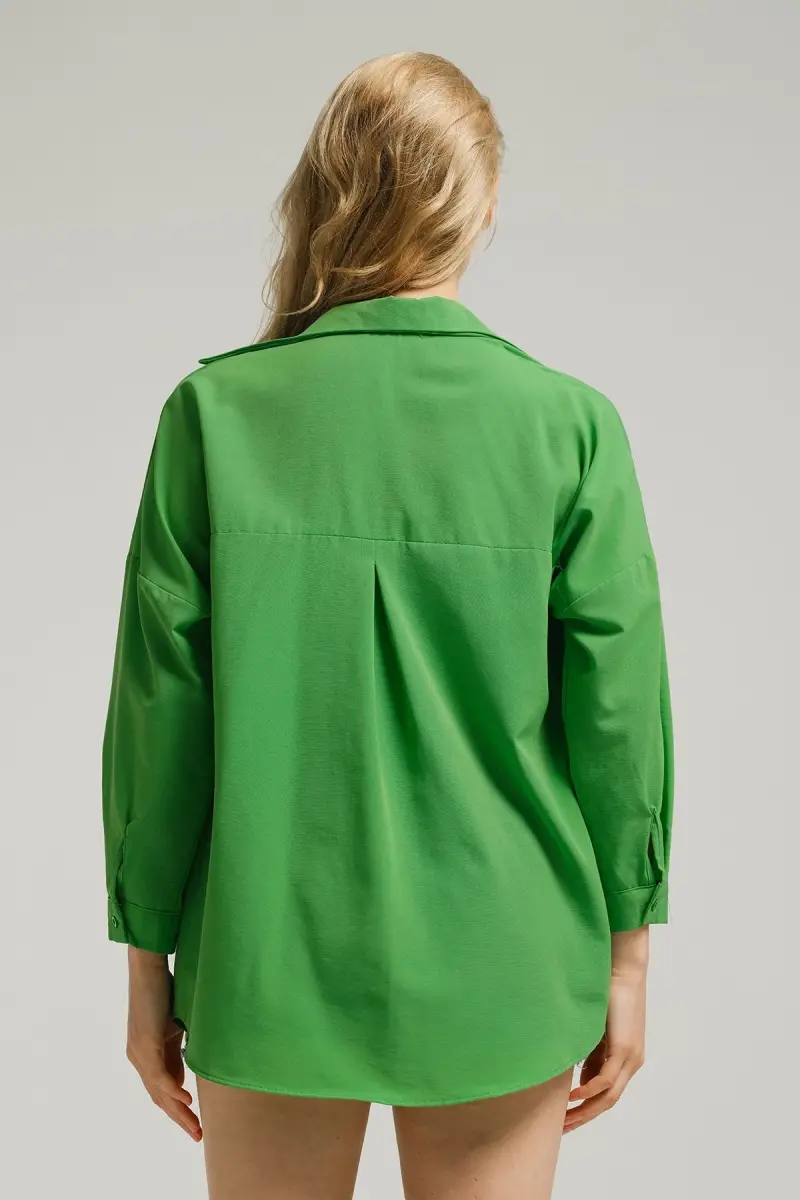 Kadın Çimen Yeşil Oversize Uzun Basic Gömlek ARM-22Y001118-Çimen Yeşil