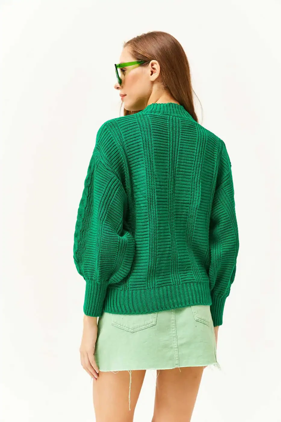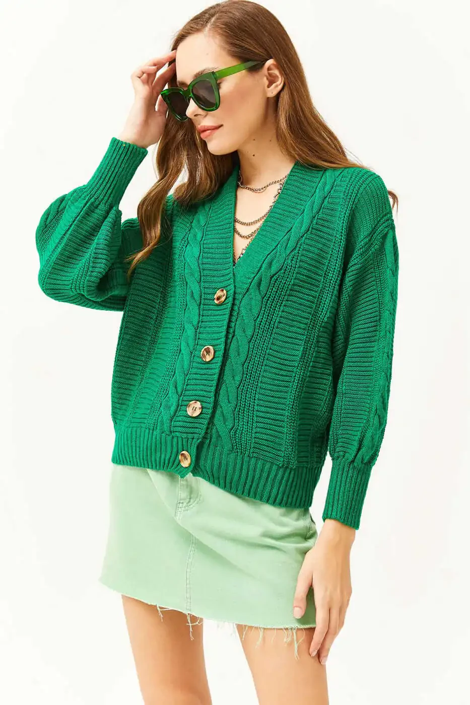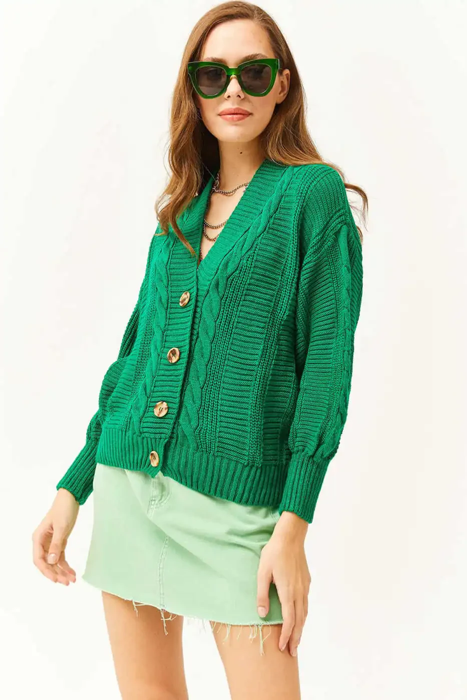 Ayollar uchun kardiganlar, örgülü kardigan, yashil kardigan, qalin örgülü kardigan, standart o'lchamdagi kardigan