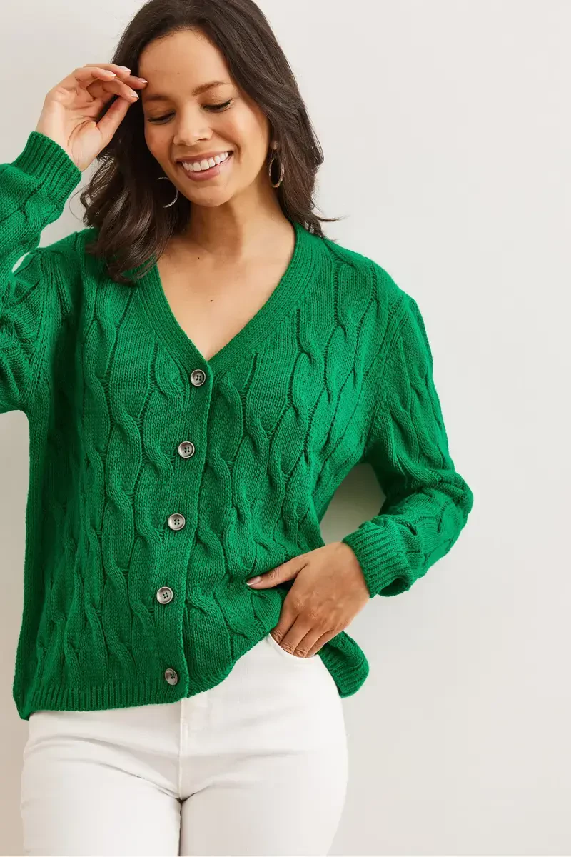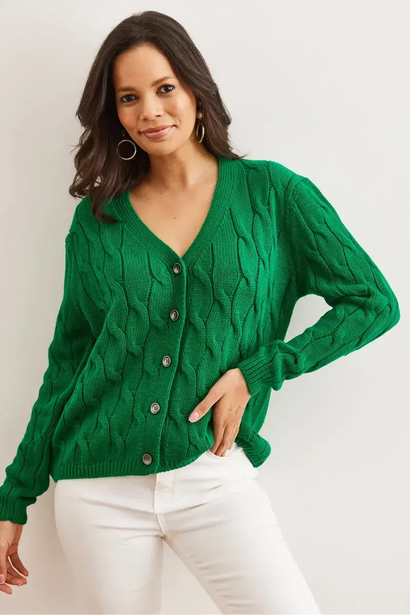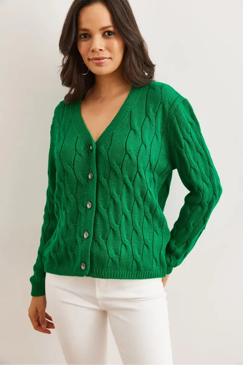 Kadın Çimen Yeşili Saç Örgülü Triko Hırka HRK-19000298-Çimen Yeşili ile stilinize canlılık katın! Bu hırka, hem şıklığı hem de rahatlığı bir arada sunarak gardırobunuzun vazgeçilmez parçası olmaya aday. Olalook official güvencesiyle sunulan bu özel tasarım, kampanya fiyatıyla dikkat çekiyor. Saç örgülü detayları, hırkaya özgün bir dokunuş katarken, çimen yeşili rengiyle doğallığı ve enerjiyi yansıtıyor. İster günlük kombinlerinizde, ister özel anlarınızda kullanabileceğiniz bu hırka, her ortamda tarzınızı konuşturmanızı sağlayacak.Ürünün çoklu satıcı seçeneği sayesinde, farklı fiyat ve avantajları değerlendirme imkanı bulabilirsiniz. Satıcı puanları, teslimat süreleri, kargo seçenekleri ve promosyonlar gibi faktörleri göz önünde bulundurarak size en uygun seçeneği belirleyebilirsiniz. Ancak unutmayın, bu üründen en fazla 10 adet sipariş verebilirsiniz. Daha fazla adet için Trendyol'un kurumsal sipariş koşullarını incelemeniz gerekmektedir.Hırkanızı beğenmediğiniz takdirde, 15 gün içinde ücretsiz iade imkanından faydalanabilirsiniz. İade koşullarıyla ilgili detaylı bilgiye Trendyol'un ilgili sayfasından ulaşabilirsiniz. %100 akrilik materyalden üretilmiş olan bu hırka, uzun ömürlü kullanım ve kolay bakım imkanı sunar. Yumuşak dokusu sayesinde gün boyu konforlu bir kullanım deneyimi yaşarsınız.Bu hırka, sadece bir giysi değil, aynı zamanda bir ifade biçimidir. Çimen yeşili rengiyle doğayı, saç örgülü deseniyle de el işçiliğini ve özgünlüğü temsil eder. Kendinizi özel hissetmek ve tarzınızı yansıtmak için bu hırkayı mutlaka deneyin. Gardırobunuzun en sevilen parçası olacağına eminiz! Hem günlük kullanımda hem de özel günlerde şıklığınızı tamamlayacak bu hırka, her mevsim rahatlıkla giyilebilir. Serin yaz akşamlarında üzerinize alarak hem şık görünebilir hem de üşümekten korunabilirsiniz. Kış aylarında ise kalın bir montun altına giyerek hem sıcak kalabilir hem de tarzınızı koruyabilirsiniz.Hırkanın standart beden olması, farklı vücut tiplerine uyum sağlamasını kolaylaştırır. Modelin üzerindeki duruşu ve ölçüleri, size fikir vermesi açısından önemlidir. Ancak unutmayın, renkler stüdyo çekimlerindeki ışık farklılıklarından dolayı değişiklik gösterebilir. Bu nedenle, ürünün gerçek rengiyle fotoğraftaki renk arasında küçük farklılıklar olabilir.Kadın Çimen Yeşili Saç Örgülü Triko Hırka, sadece bir hırka değil, aynı zamanda bir tarz ve yaşam biçimidir. Kendinizi iyi hissetmek, tarzınızı yansıtmak ve her ortamda dikkat çekmek için bu hırkayı gardırobunuza ekleyin. Hem kendiniz için hem de sevdikleriniz için mükemmel bir hediye seçeneği olan bu hırka, onlara verdiğiniz değeri göstermenin en güzel yollarından biridir. Unutmayın, stil sahibi olmak sadece kıyafetlerle değil, aynı zamanda kendinizi nasıl hissettiğinizle de ilgilidir. Bu hırka, size her zaman iyi hissettirecek ve tarzınızı en iyi şekilde yansıtmanızı sağlayacaktır.