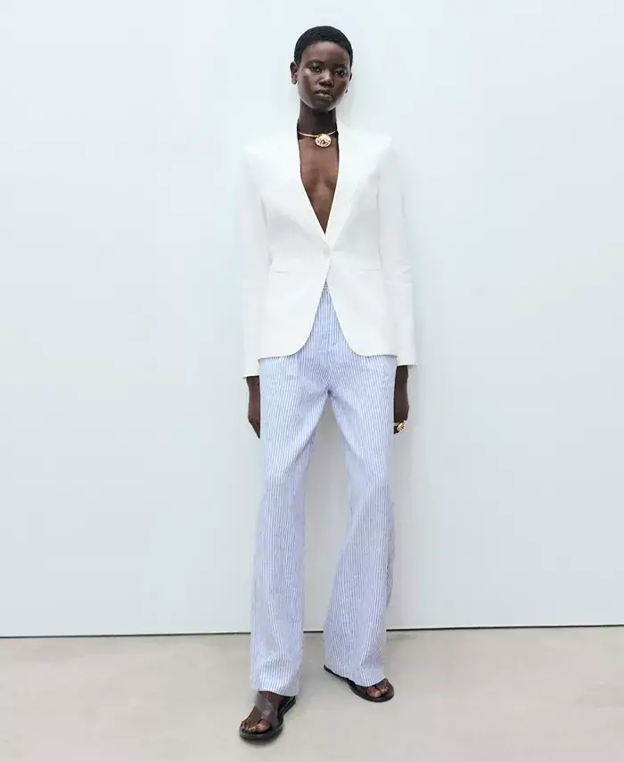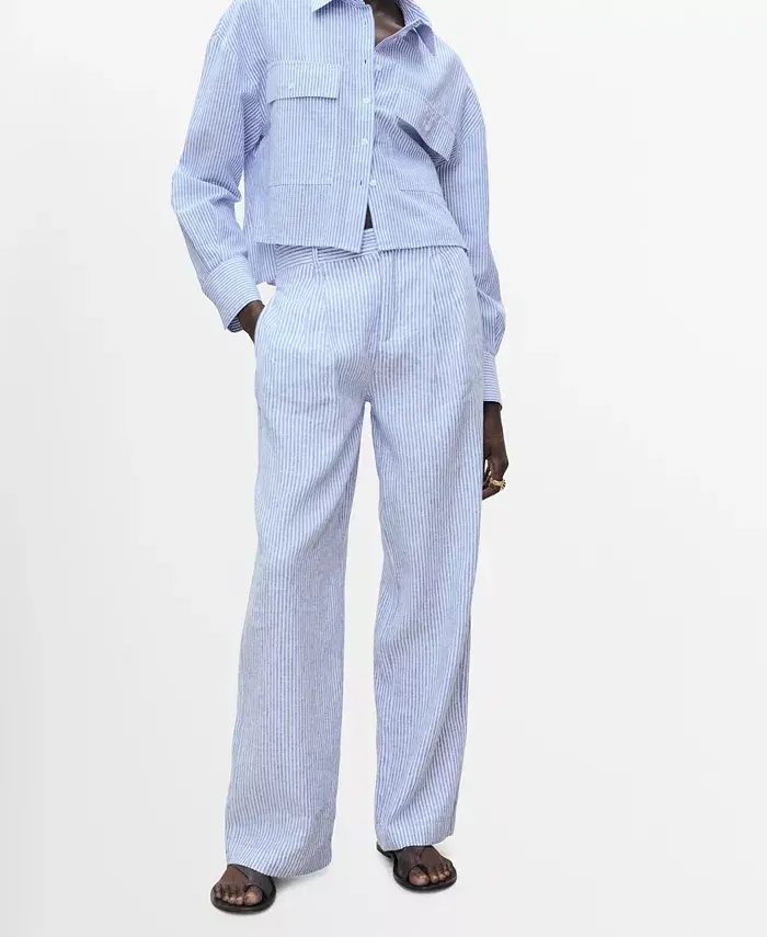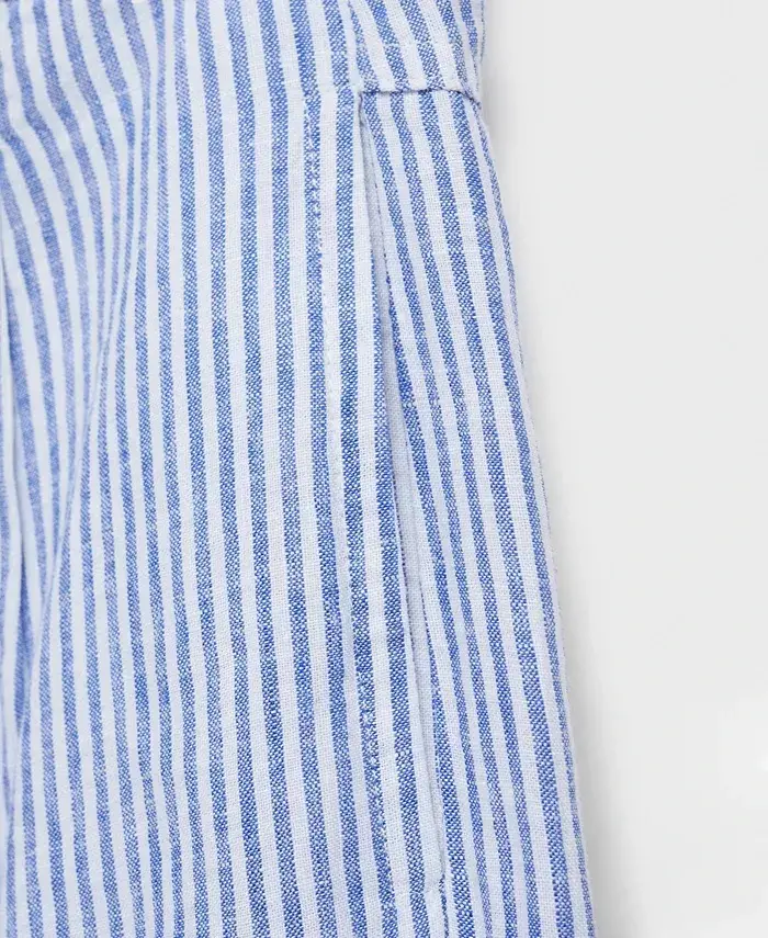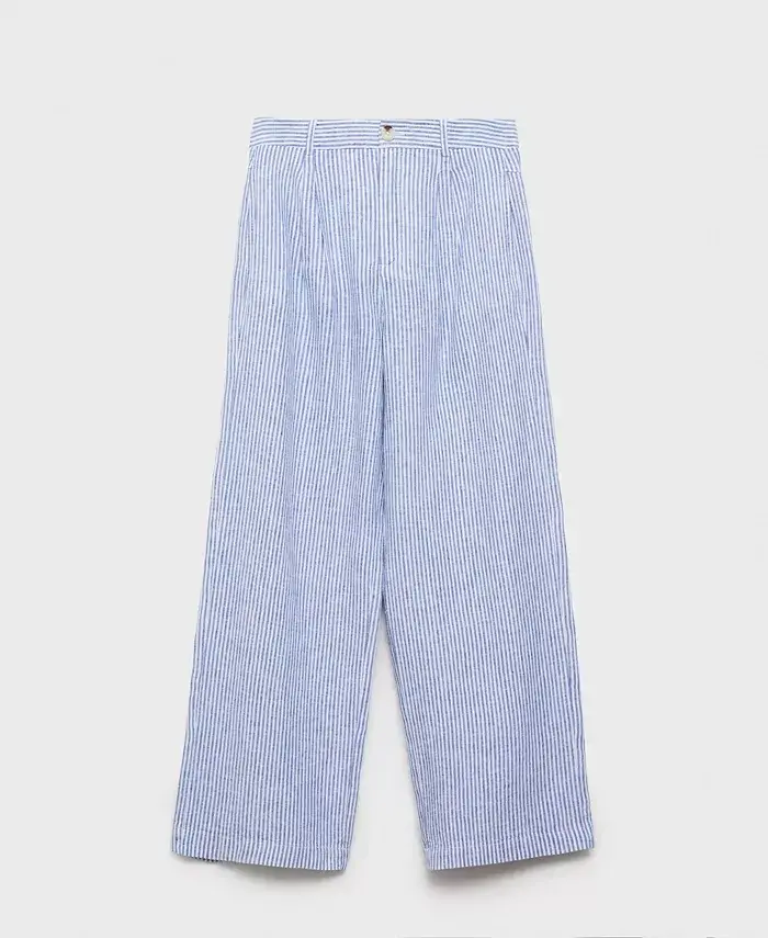 keten karışımı pantolon, çizgili pantolon, yüksek bel pantolon, geniş paça pantolon, yazlık pantolon, rahat pantolon, şık pantolon, kadın pantolon, modern pantolon, hafif pantolon