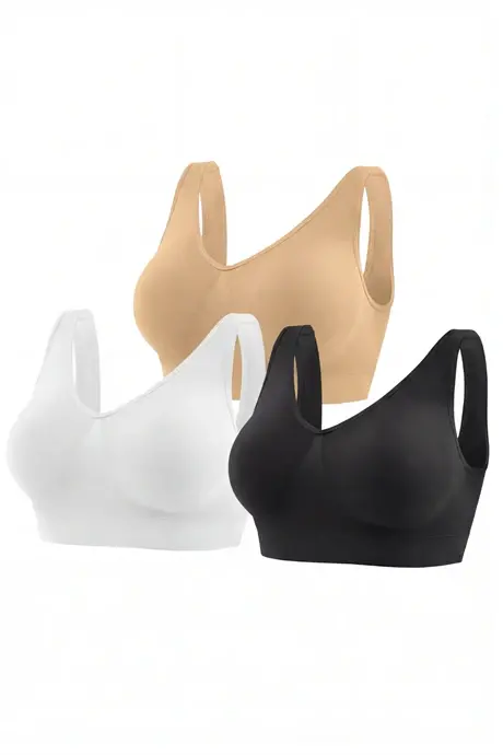 Kadın Dikişsiz Kalın Askılı Esnek Pedli Toparlayıcı Büstiyer Renkli 3'lü Paket