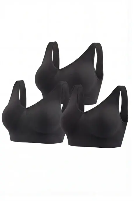 Kadın Dikişsiz Kalın Askılı Esnek Pedli Toparlayıcı Büstiyer Siyah 3'lü Paket