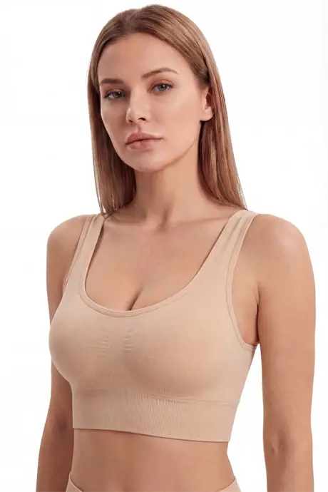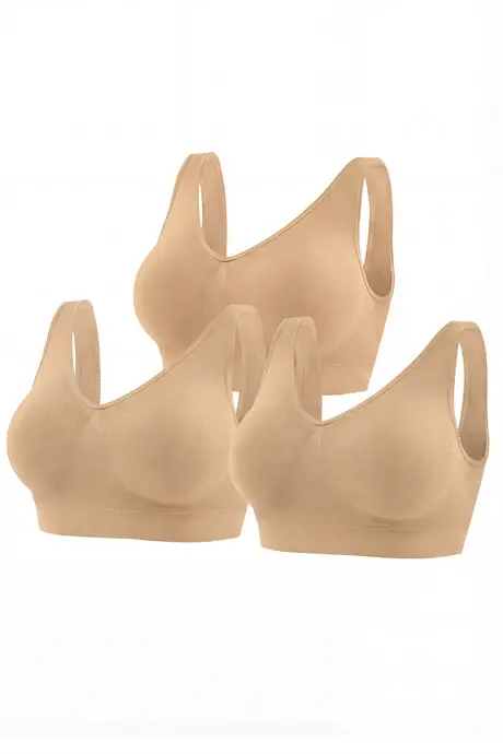Kadın Dikişsiz Kalın Askılı Esnek Pedli Toparlayıcı Büstiyer Ten 3'lü Paket