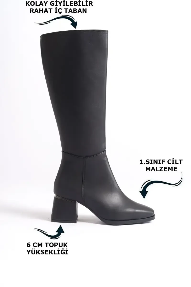 These magnificent boots, a symbol of elegance and grace, are set to become an indispensable part of women's wardrobes. The Women's Knee-High Black Heeled Shiny Detail Zippered Leather Look Long Boots are an option that will complement your style and allow you to showcase your elegance with every step. These boots, which will be indispensable for any stylish combination, combine beauty and comfort. Designed with the warm and sophisticated touch of black, these heeled boots are made of the highest quality 1st class leather material. This special material provides long-lasting use while offering a luxurious look. Combining elegance and comfort with its knee-high cut, these boots can be easily put on thanks to the zipper on the side. These 40 cm long boots elegantly wrap the legs, including the heel. In addition, it provides a perfect fit for every body type with the calf measurements offered for different sizes. The material of the boot has a structure that wraps the leg like stretch and is also extremely soft. The 6 cm high heel provides both an elegant and comfortable walk. The shiny details on the top make these boots unique. The jurdan material used in its sole offers a non-slip and durable ground, while the Pad support in the inner sole increases foot comfort. In addition, the inner lining of the boot is polar, which keeps the feet warm and protects against cold weather conditions. This product is sent by Limeo. Remember, don't compromise on your comfort while completing your style. These boots are an ideal choice for both daily use and your special occasions. Update your wardrobe with these stylish and comfortable boots now and make a difference with every step!