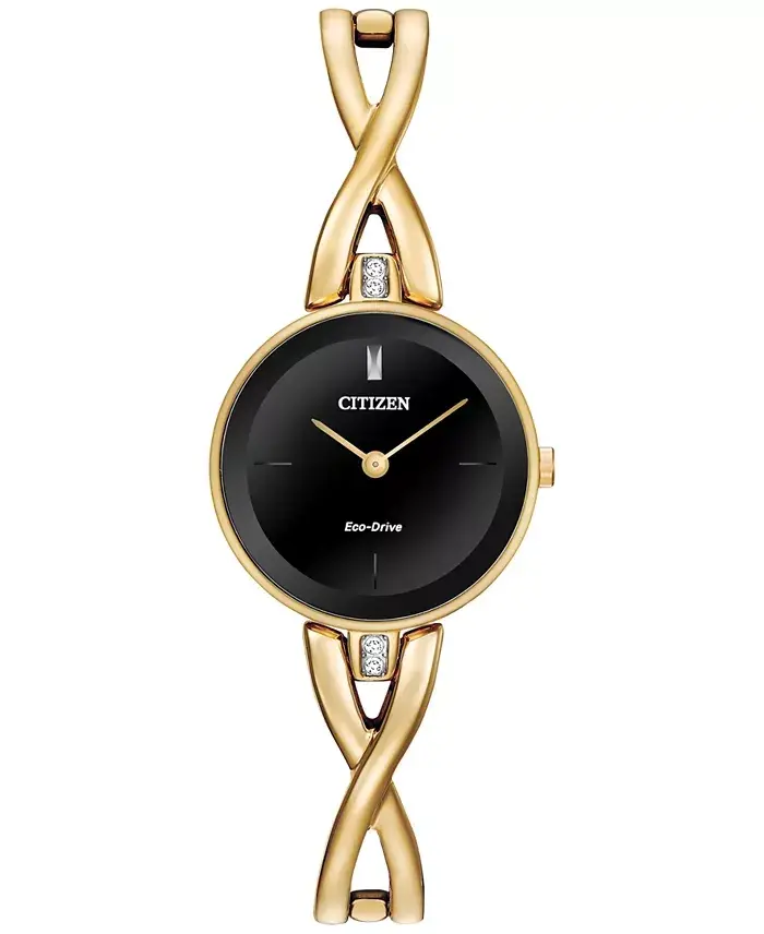 Citizen watch, women's watch, Eco-Drive, gold watch, stainless steel, crystal watch, black dial, wristwatch, battery-free, waterproof watch