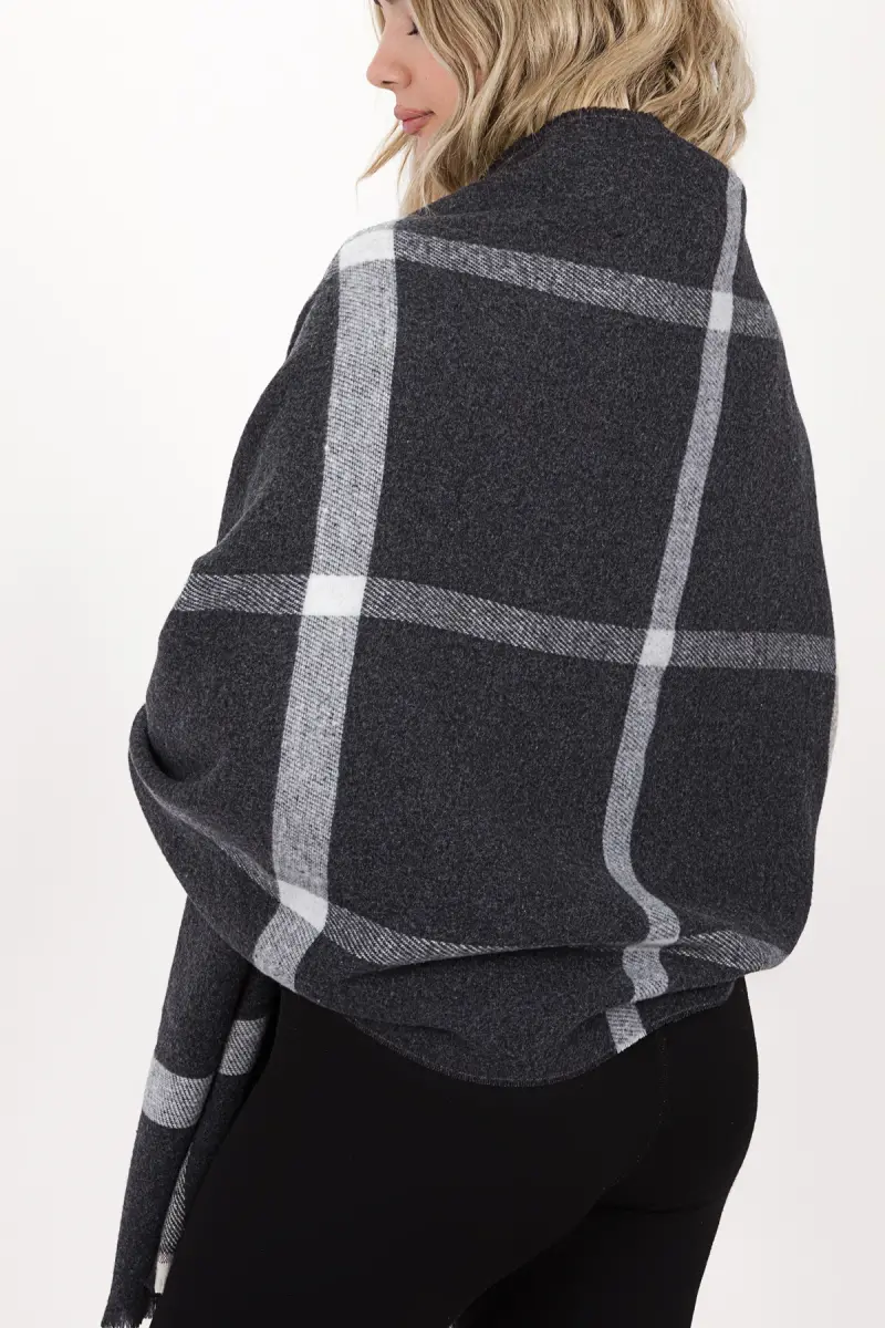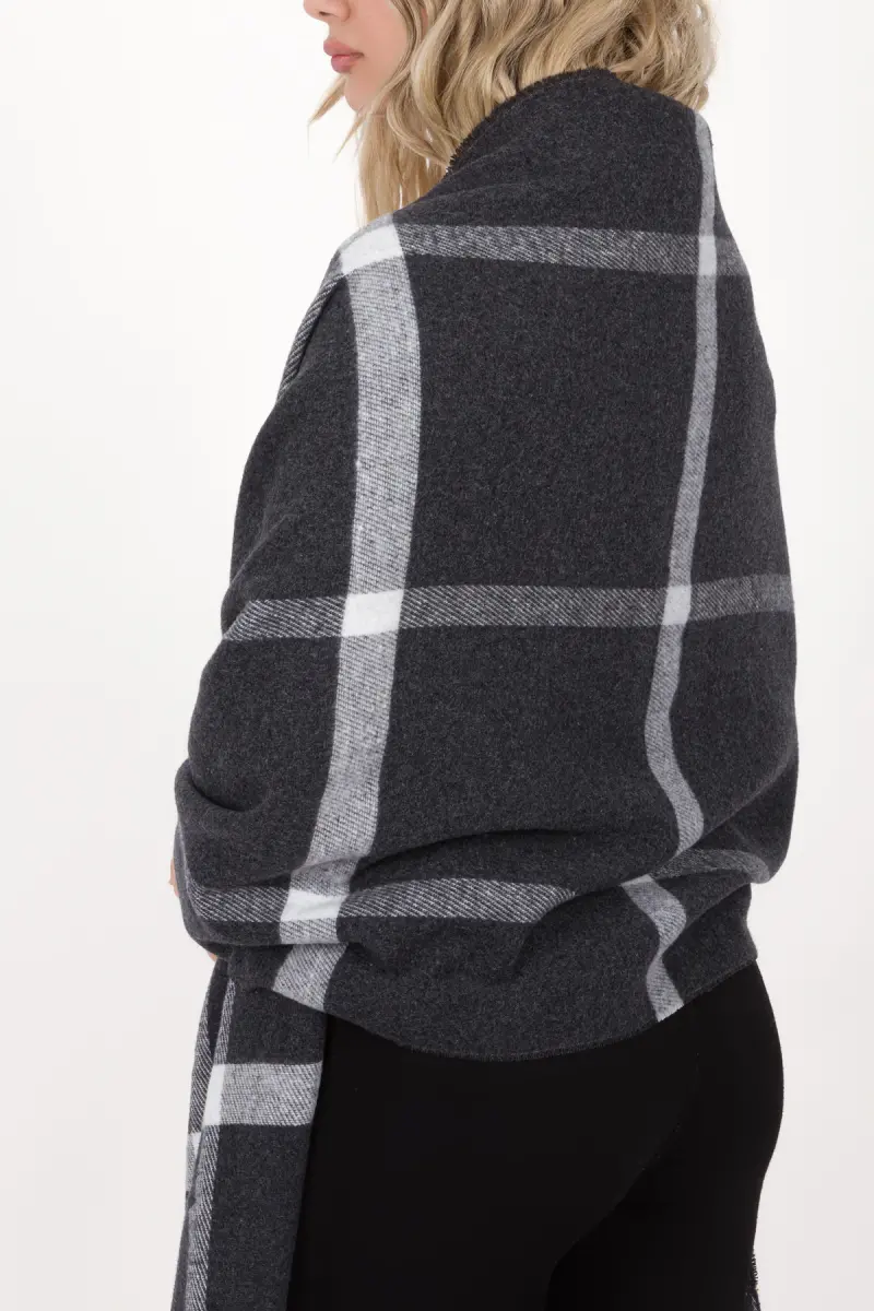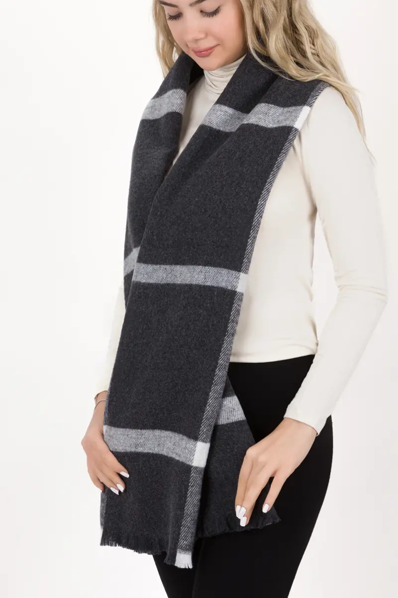 Kadın Ekose Desen Pamuk Dokuma Şal Atkı 70*190-AÇIK SİYAH ÇİZGİLİ