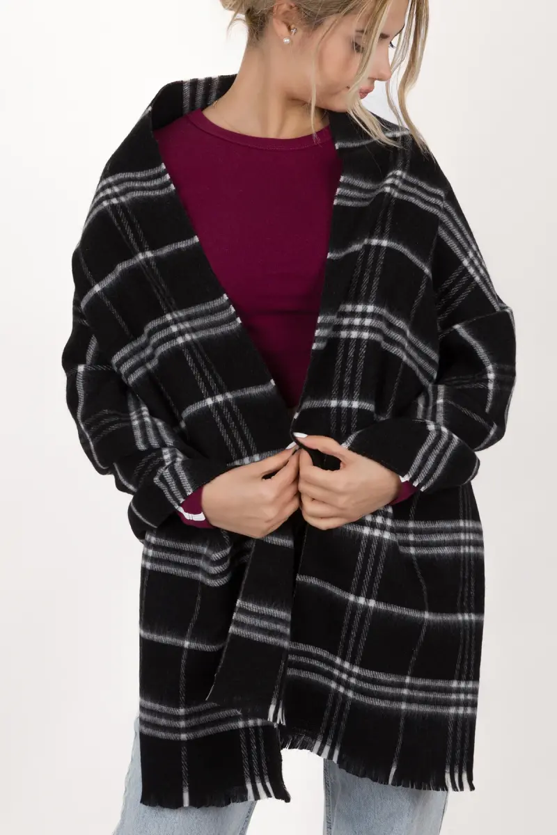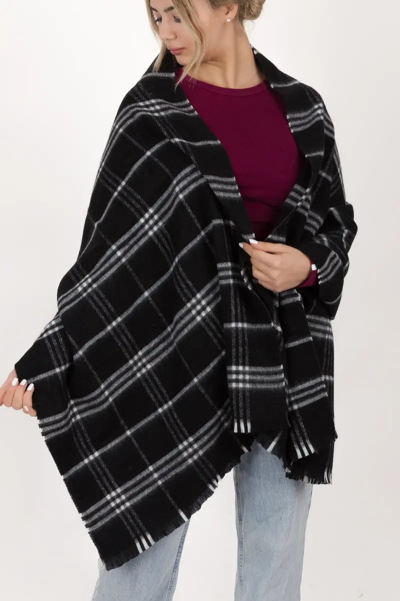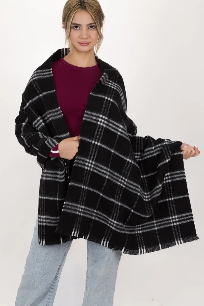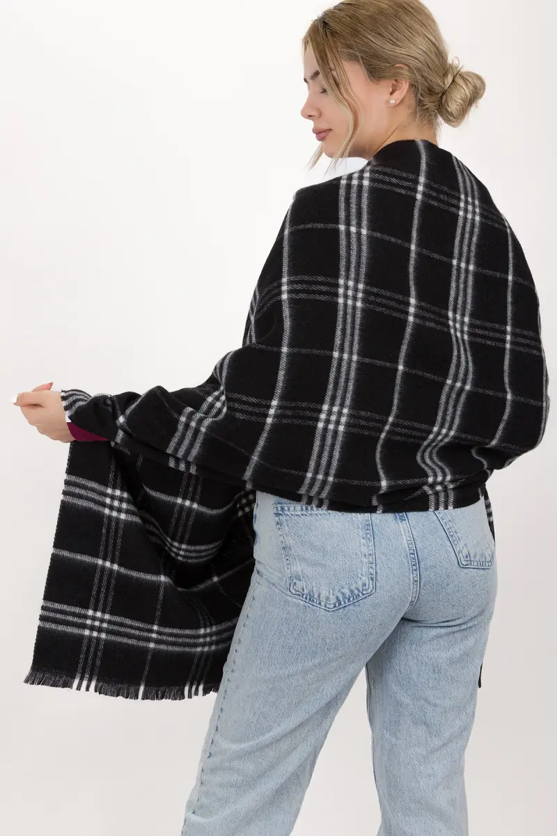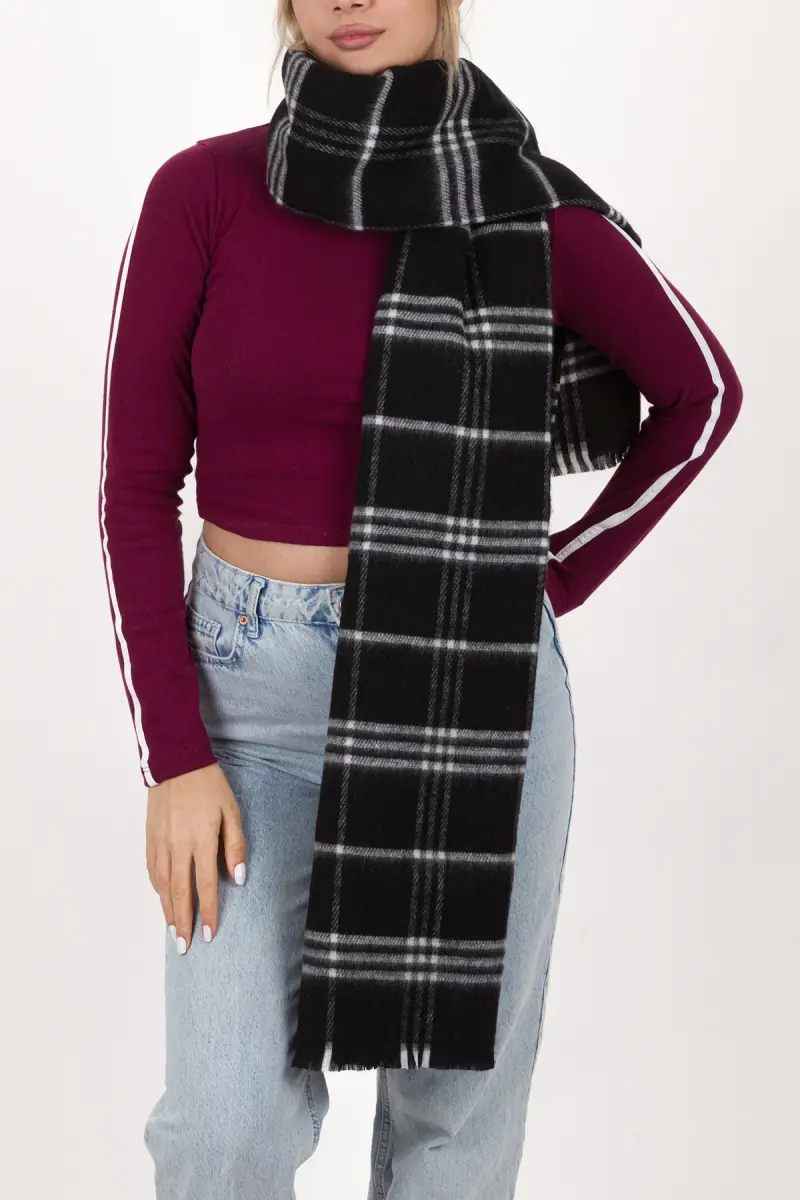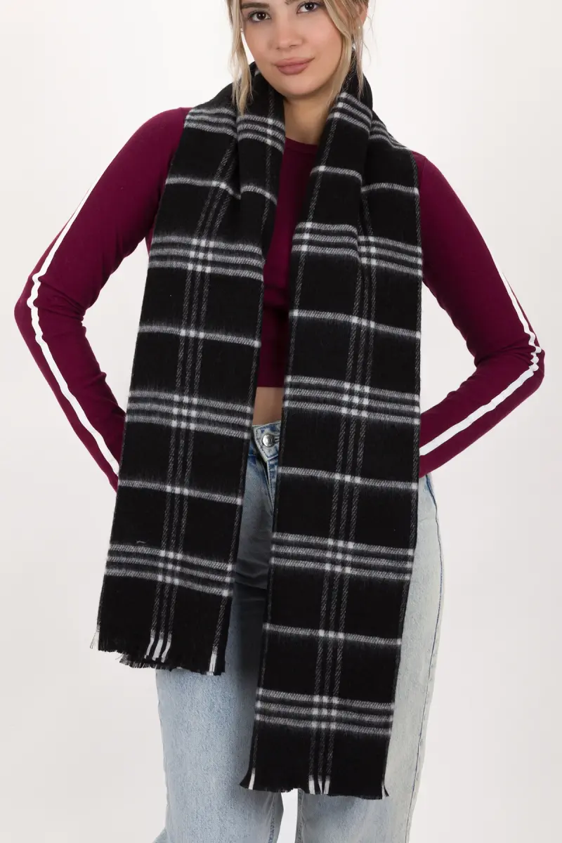 Kadın Ekose Desen Pamuk Dokuma Şal Atkı 70*190-SİYAH 3 ÇİZGİLİ