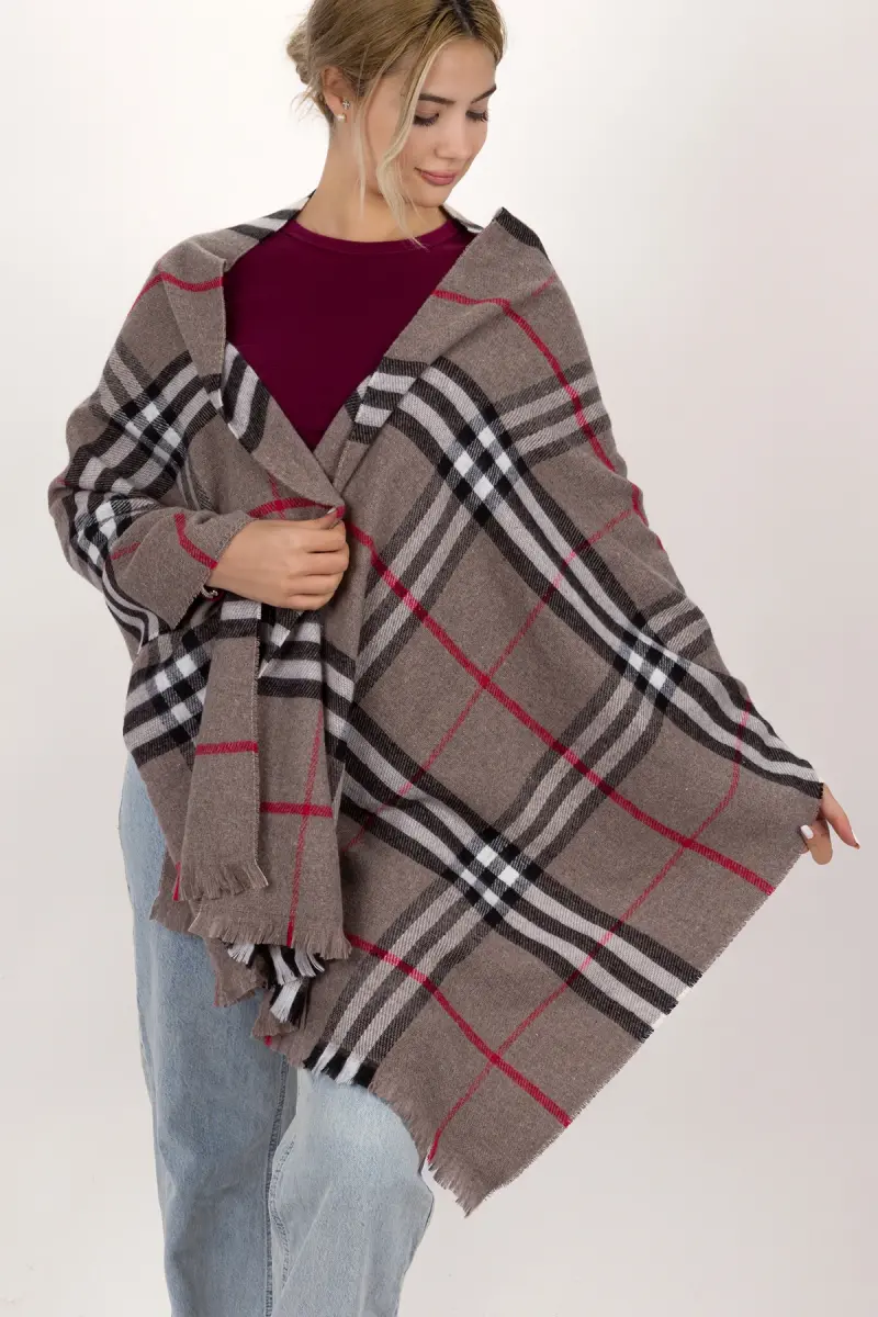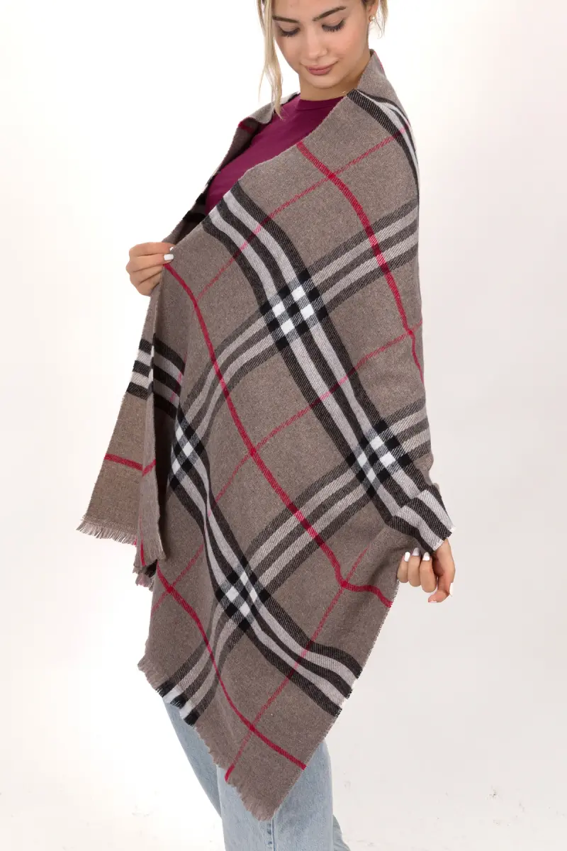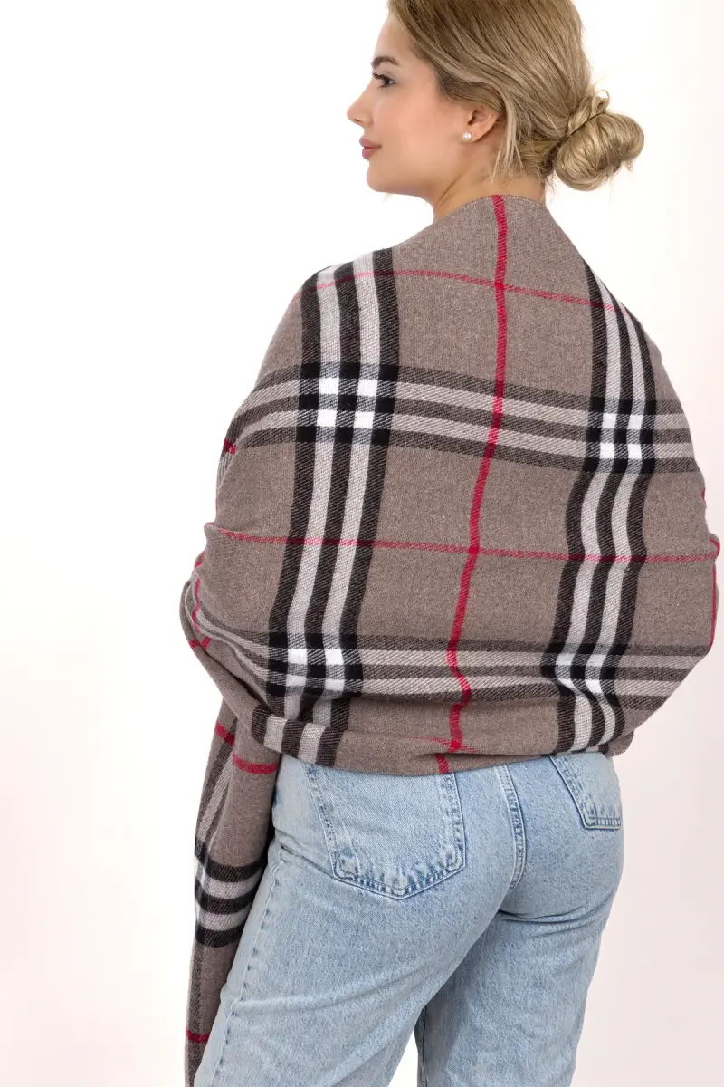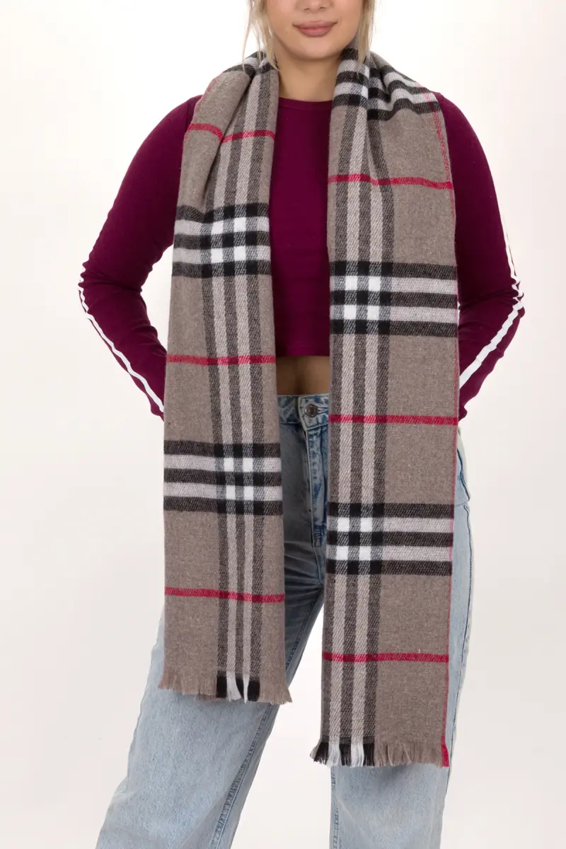 Kadın Ekose Desen Pamuk Dokuma Şal Atkı 70*190-VİZON ÇİZGİLİ