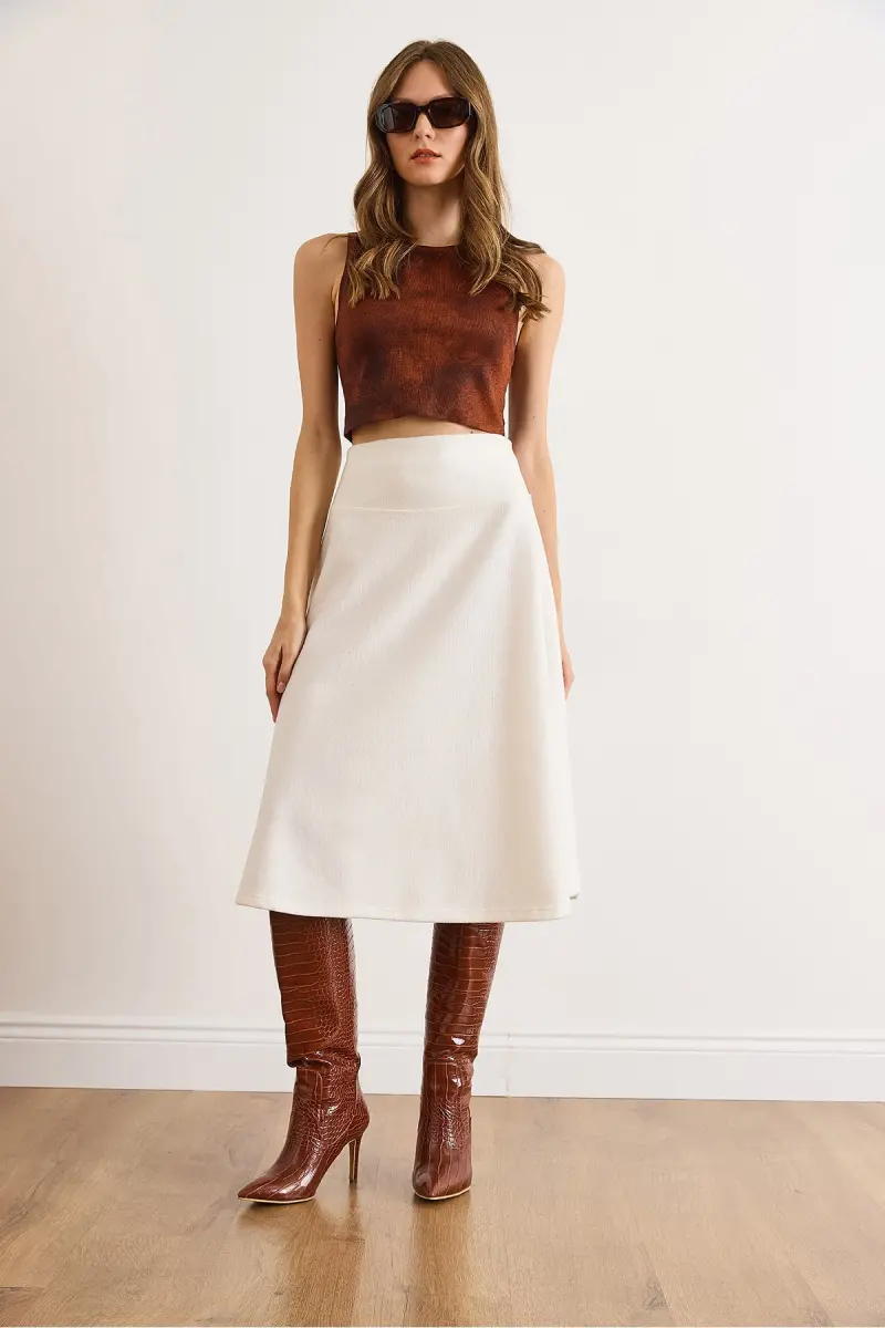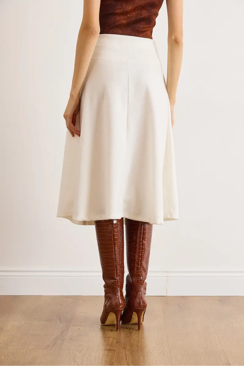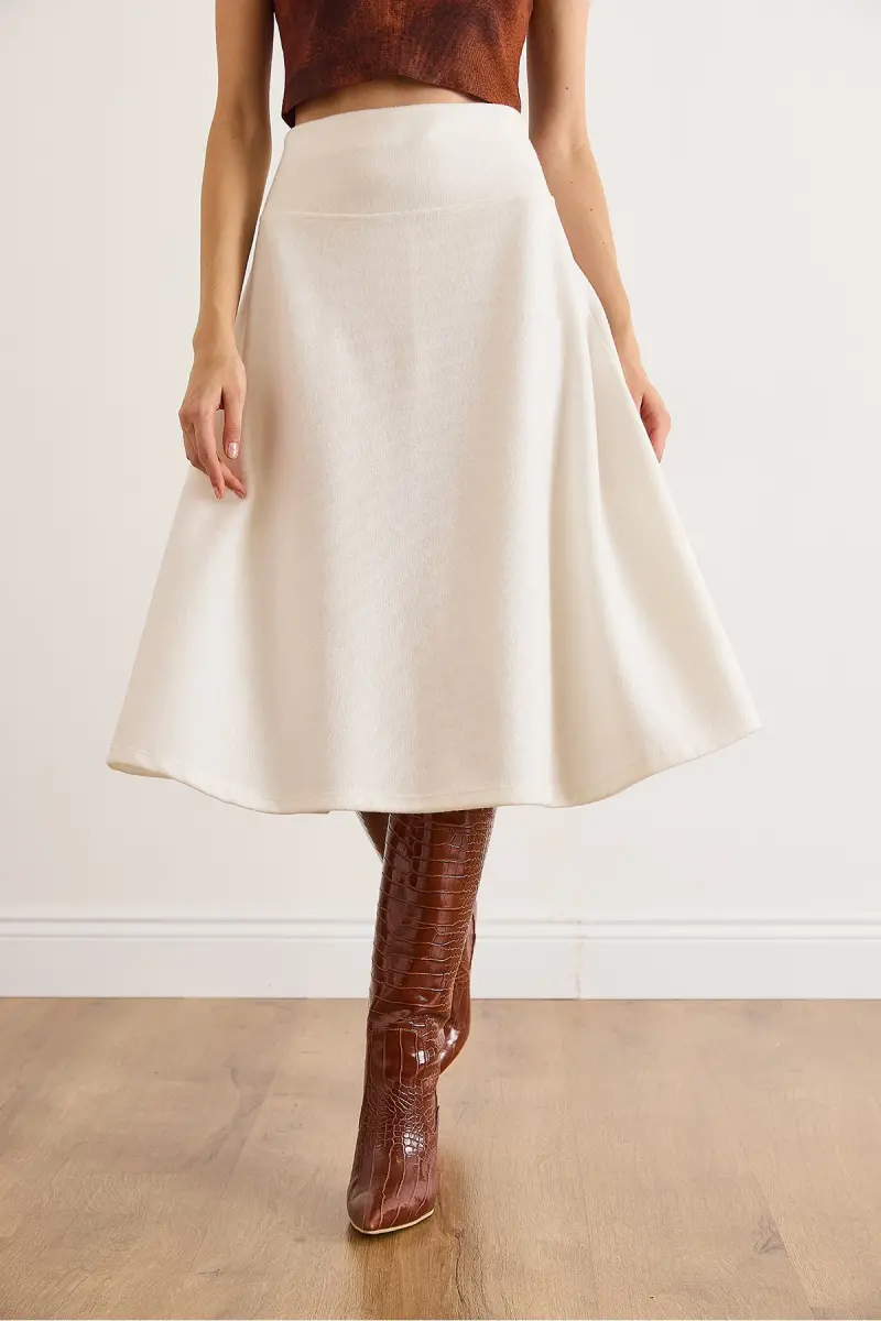 Kadın Ekru Beli Bantlı Selanik Çan Etek ETK-19000297-Ekru