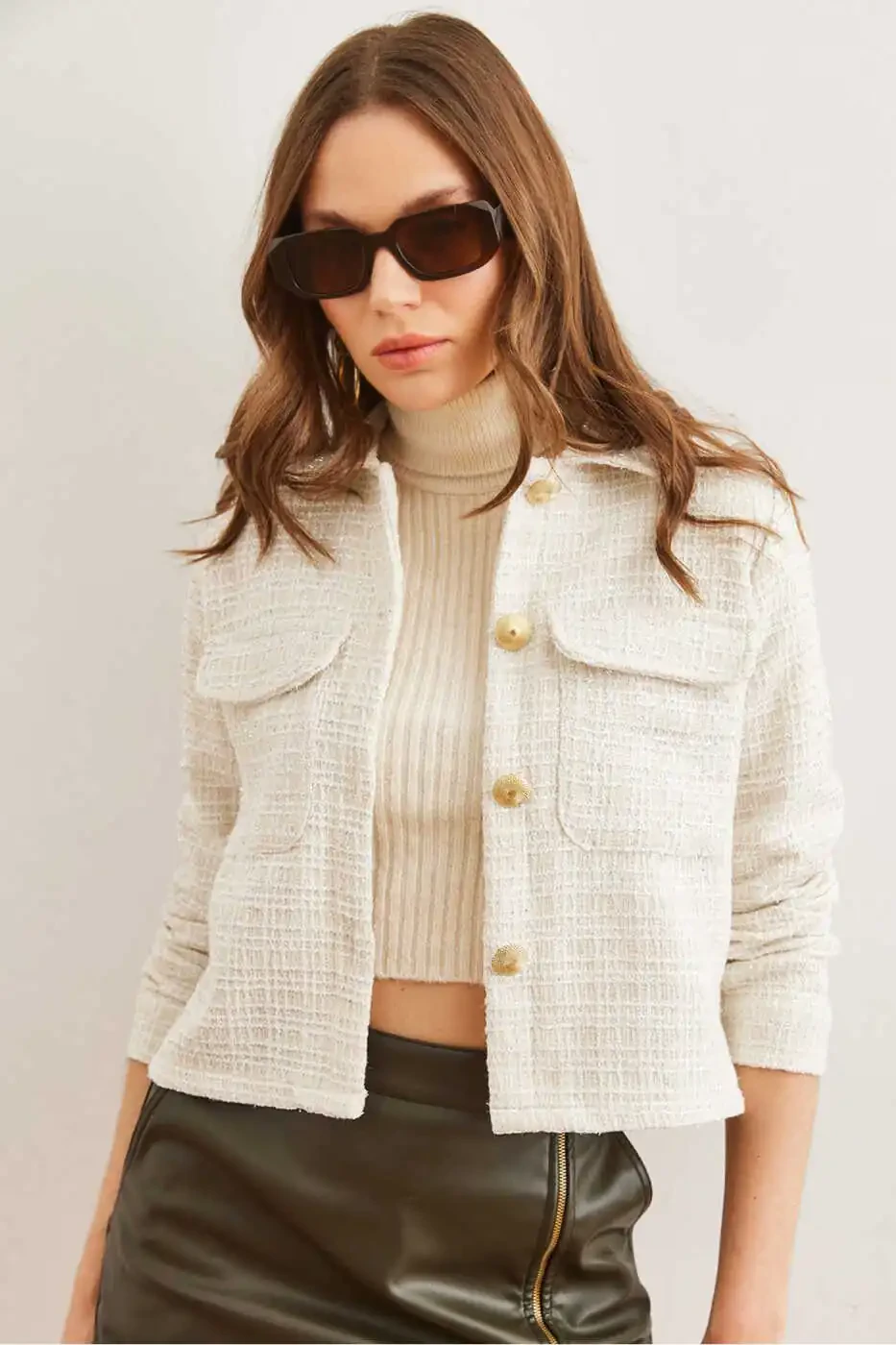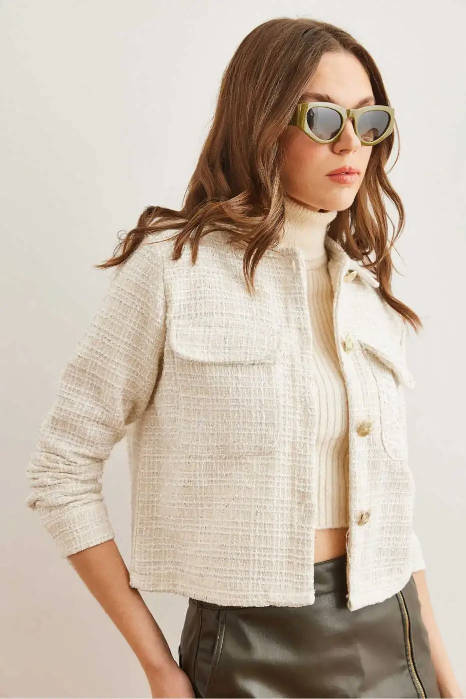 Enhance your feminine grace with the exquisite Women's Ecru Pocket Buttoned Sim Detailed Tweed Jacket, brought to you by the renowned [page="merchant_info"]Trendyol - Olalook[/page]. Crafted from a durable blend of 50% cotton and 50% polyester, this jacket boasts an impressive 1500 durability rating, ensuring longevity. With a length of 49 cm and a chest measurement of 36 cm, the jacket fits perfectly on the model who wears a size S/36/1. The model's measurements are 1.74 height, 80 chest, 60 waist, and 90 hips. The jacket's functional dual pockets and button details add both practicality and elegance, while the shimmering sim embellishments create an eye-catching statement. Please note that colors may vary due to differences in studio lighting.