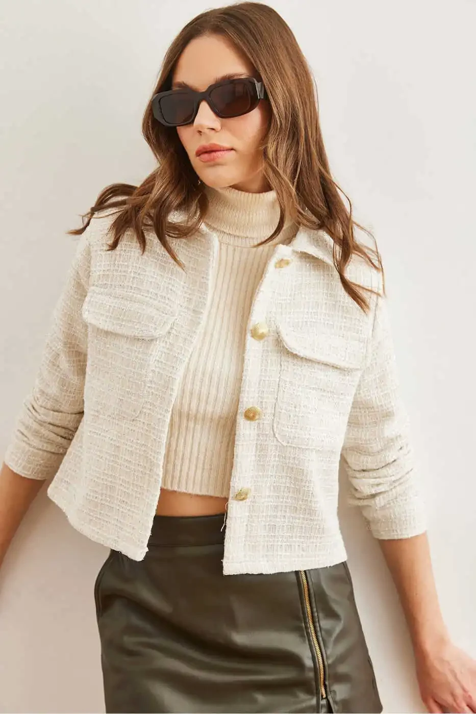 Women's Chic and Elegant Ecru Tweed Jacket