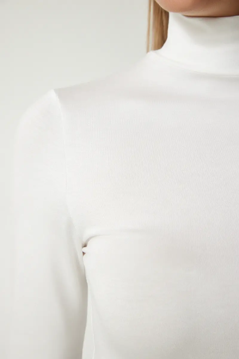 Kadın Ekru Dik Yaka Saran Esnek Örme Bluz UB00200-Ekru
