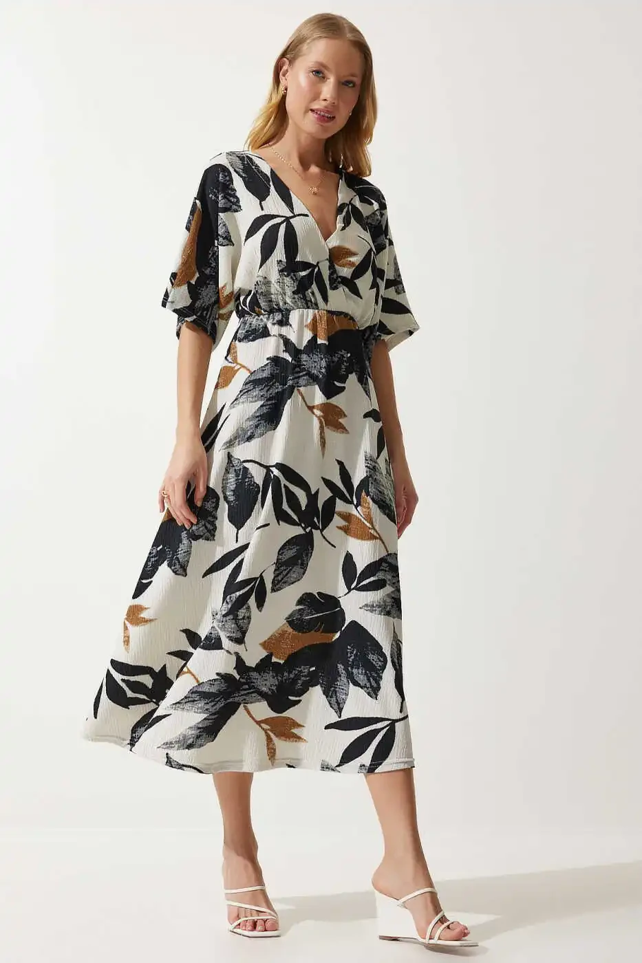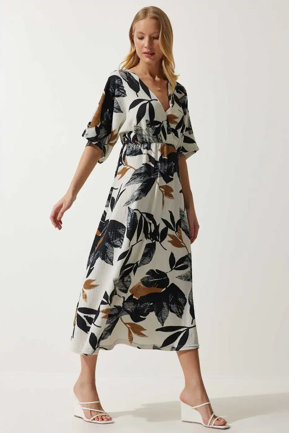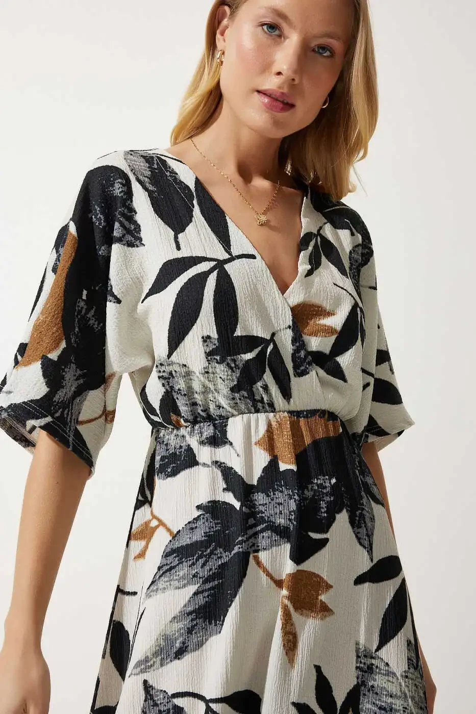 Ayollar uchun Ekru Qora Konvert Yoqali Naqshli Triko Ko'ylak DK00167 zamonaviy va oqlangan ko'rinish izlayotgan ayollar uchun ajoyib tanlovdir. Konvert kesimi har qanday tana turiga moslashib, benuqson siluet yaratadi, ko'zni qamashtiruvchi bosma naqsh esa sizning uslubingizni ta'kidlaydi. Triko mato tuzilishi kun bo'yi qulaylik va moslashuvchanlikni ta'minlaydi. Uzun bo'yli, nafis va olijanob qiyofa yaratadi, 95% poliester va 5% elastan aralashmasi chidamlilik va uzoq muddatli foydalanishni ta'minlaydi. Poliester materialining dog'larga chidamliligi va tez quritish afzalligi parvarish qilishni osonlashtiradi. Balon yeng dizayni zamonaviy teginish qo'shadi, velosiped yoqasi esa turli aksessuarlar bilan kombinatsiya qilish imkonini beradi. Har qanday yosh guruhidagi ayollarga mos keladigan dizayni bilan u sizning garderobingizning ajralmas qismiga aylanadi. Bu ko'ylak nafislik va qulaylikni birlashtirishni istaganlar uchun ideal tanlovdir. Uni kundalik hayotda ham, maxsus kunlarda ham bemalol kiyishingiz mumkin. Baland poshnali poyabzal va zamonaviy sumka bilan birlashtirib, ajoyib ko'rinishga ega bo'lishingiz mumkin. Mahsulot Trendyol kafolati bilan sizga yetkaziladi va tez yetkazib berish opsiyasi bilan qisqa vaqt ichida sizning qo'lingizda bo'ladi. Aksiyadan foydalanish va bu zamonaviy ko'ylakka ega bo'lish uchun shoshiling! Zaxiralarimiz cheklangan.