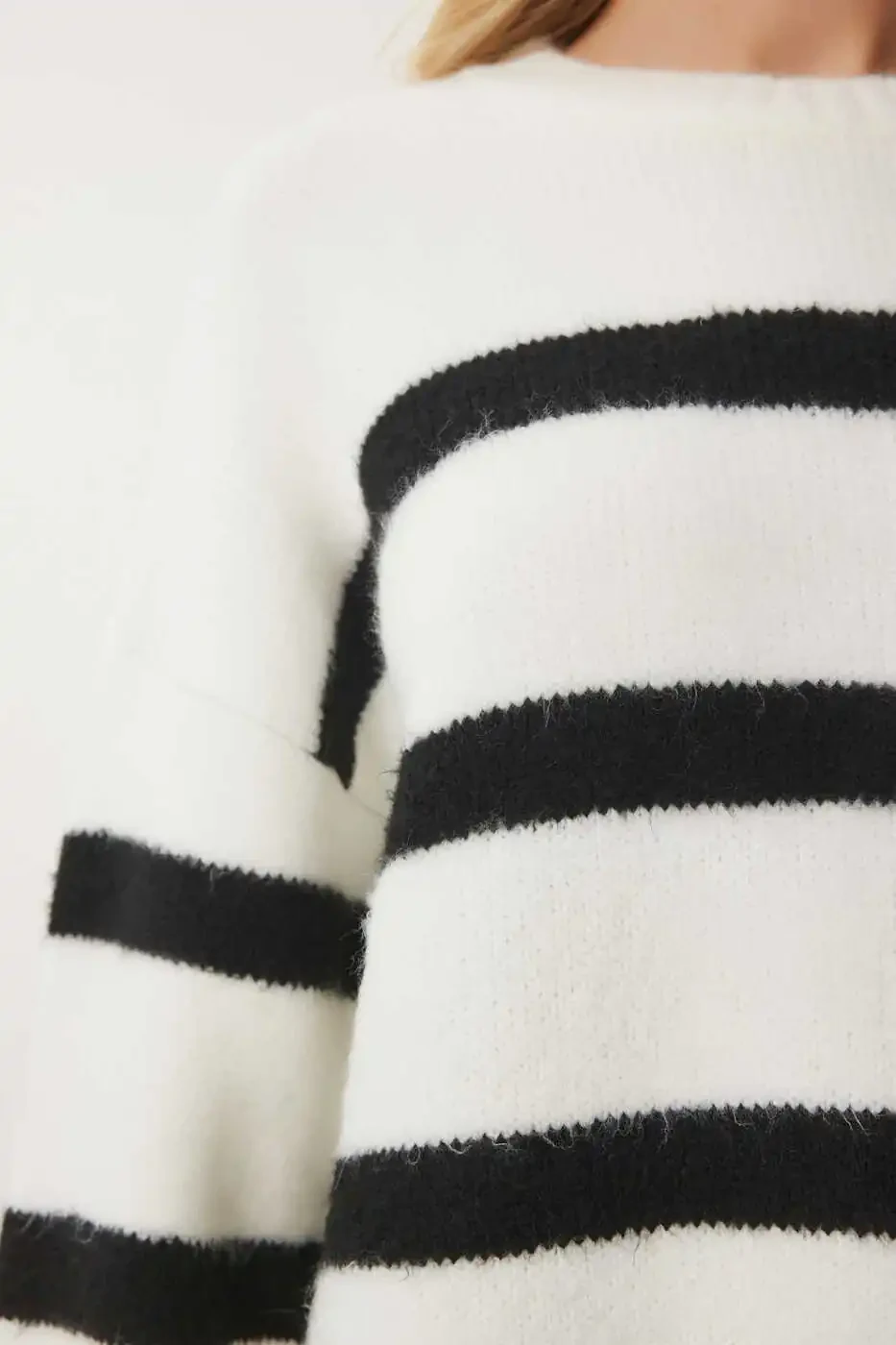 Kadın Ekru Siyah Bisiklet Yaka Çizgili Triko Kazak PF00107, şıklığı ve rahatlığı bir araya getiren özel bir tasarıma sahiptir. Bu triko kazak, modern çizgileri ve bisiklet yaka detayı ile gardırobunuzun vazgeçilmez parçalarından biri olmaya aday. %74 akrilik, %19 polyester ve %7 elastan karışımı sayesinde hem sıcak tutar hem de gün boyu konforlu bir kullanım sunar. Düşük omuzlu tasarımı, rahat bir silüet oluştururken, esnek yapısı hareket özgürlüğünüzü kısıtlamaz. Kazak, ekru ve siyah renklerin uyumuyla dinamik bir görünüm sunar ve farklı kombinler oluşturmanıza olanak tanır. İster günlük giyimde, ister özel bir etkinlikte tercih edebileceğiniz bu kazak, her ortamda şıklığınızı ön plana çıkarır. Ürünün 71 cm'lik boyu ve 68 cm'lik kol boyu, farklı vücut tiplerine uyum sağlayacak şekilde tasarlanmıştır. Modelin ölçüleri (Boy: 1.73 cm, Göğüs: 79 cm, Bel: 60 cm, Kalça: 90 cm) göz önünde bulundurularak bedeninizi seçebilirsiniz. Trendyol güvencesiyle sunulan bu kazak, hızlı ve güvenilir bir alışveriş deneyimi sunar. 15 gün içinde ücretsiz iade imkanı sayesinde, ürünü beğenmediğiniz takdirde kolayca iade edebilirsiniz. Bu şık ve kullanışlı triko kazak, gardırobunuzun olmazsa olmazlarından biri olacak. Hem sıcak tutan yapısı hem de modern tasarımıyla her mevsim rahatlıkla kullanabileceğiniz bu kazak, stilinizi tamamlayacak.