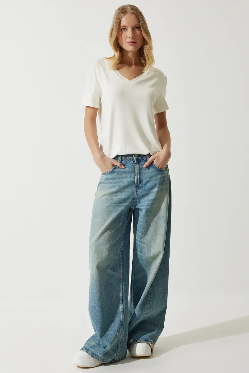 Bu ürün Happinessİstanbul tarafından gönderilecektir.Kampanya fiyatından satılmak üzere 100 adetten fazla stok sunulmuştur.İncelemiş olduğunuz ürünün satış fiyatını satıcı belirlemektedir.Bir ürün, birden fazla satıcı tarafından satılabilir. Birden fazla satıcı tarafından satışa sunulan ürünlerin satıcıları ürün için belirledikleri fiyata, satıcı puanlarına, teslimat statülerine, ürünlerdeki promosyonlara, kargonun bedava olup olmamasına ve ürünlerin hızlı teslimat ile teslim edilip edilememesine, ürünlerin stok ve kategorileri bilgilerine göre sıralanmaktadır.Bu üründen en fazla 10 adet sipariş verilebilir. 10 adedin üzerindeki siparişleri Trendyol iptal etme hakkını saklı tutar. Belirlenen bu limit kurumsal siparişlerde geçerli olmayıp, kurumsal siparişler için farklı limitler belirlenebilmektedir.15 gün içinde ücretsiz iade. Detaylı bilgi için [page="return_conditions"]tıklayın .Rahat kesimi ile günlük kullanım için ideal, regular kalıpta tasarlanmış ekru v yaka basic tshirtKısa kollu yapısı sayesinde yaz aylarında serinlik ve konfor sunarEsneklik kazandıran elastan içeriği (%5) hareket özgürlüğünüzü artırırken, vücut hatlarınıza uyum sağlarÖrme kumaş tipi, dayanıklılığı ve nefes alabilirliği ile öne çıkaruzun süreli kullanımlarda bile formunu korurKolay bakım imkanı sunan yıkama talimatları sayesinde tshirtünüzü ilk günkü gibi taze tutabilirsinizHer yaş grubuna hitap eden tasarımıyla geniş bir kullanıcı yelpazesine sahiptirherkes için uygun bir seçimdirSade ve şık görünümüyle dikkat çeken düz deseni, farklı kombinlerle kolayca uyum sağlarBasic koleksiyonun bir parçası olarak, zamansız parçalar arasında yerini alırgardırobunuzun vazgeçilmezleri arasına eklenir