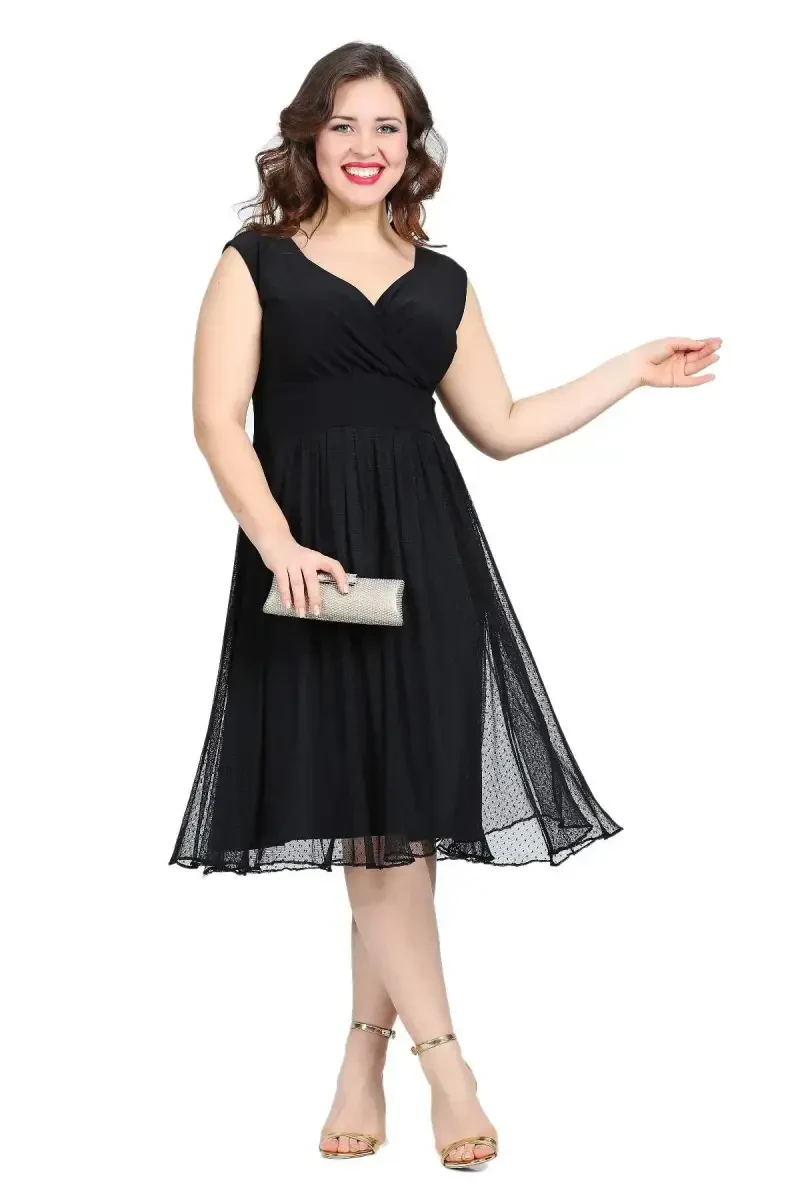 For the best care, please refer to the washing instructions provided on the product label. Elevate your wardrobe with the Women's Flexible Polka Dot Tulle Flexible Chic Midi Black Dress and turn heads wherever you go!