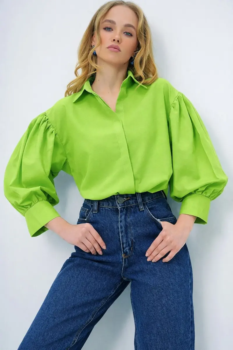 Bu ürün Trend Alaçatı Stili tarafından gönderilecektir.Kampanya fiyatından satılmak üzere 5 adetten az stok bulunmaktadır.Bir ürün, birden fazla satıcı tarafından satılabilir. Birden fazla satıcı tarafından satışa sunulan ürünlerin satıcıları ürün için belirledikleri fiyata, satıcı puanlarına, teslimat statülerine, ürünlerdeki promosyonlara, kargonun bedava olup olmamasına ve ürünlerin hızlı teslimat ile teslim edilip edilememesine, ürünlerin stok ve kategorileri bilgilerine göre sıralanmaktadır.Bu üründen en fazla 10 adet sipariş verilebilir. 10 adedin üzerindeki siparişleri Trendyol iptal etme hakkını saklı tutar. Belirlenen bu limit kurumsal siparişlerde geçerli olmayıp, kurumsal siparişler için farklı limitler belirlenebilmektedir.15 gün içinde ücretsiz iade. Detaylı bilgi için [page="return_conditions"]tıklayın .% 100 CottonÜrün Boyu: 67 Cm Göğüs: 104 Cm Bel: 98 Cm Kol Boyu: 43 CmDesen Dağılımı Yüzey Boyunca Dengeli İlerleyerek Görsel Bütünlük Sağlar.Dokuma Sıklığı Kullanım Sırasında Form Kaybını Azaltmaya Yardımcı Olur.Minimal Yaklaşımıyla Kadın Giyim Aksesuarları İçinde İşlevsel Bir Tamamlayıcıdır.Kenar Bitişleri Temiz Ve Düzenli Bir Yapı Sunar.Gardırobunuzda Uzun Süre Yerini Koruyacak, Zamansız Bir Alternatif Olarak Öne Çıkar.Sezonun Enerjisini Yansıtan Tasarımıyla Öne Çıkar Ve Sezon Boyunca Rahat Bir Kullanım Sunarak Pratik Bir Seçenek Oluşturur.Numune Bedeni: S/36/1Modelin Ölçüleri: Boy: 1.70, Göğüs: 80, Bel: 58, Kalça: 89, Beden: S/36/1Stüdyo Çekimlerinde Renkler Işık Farklılığından Dolayı Değişiklik Gösterebilir.Kadın Fıstık Yeşili Balon Kol Desenli Baskılı Viscon Dokuma Gömlek ALC-X9654