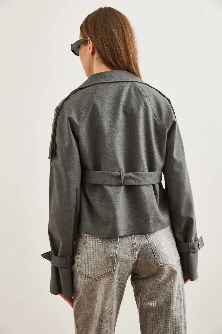 Ayollar tutun astarli kamarli belbogʻli qisqa kurtka | CKT-19000412