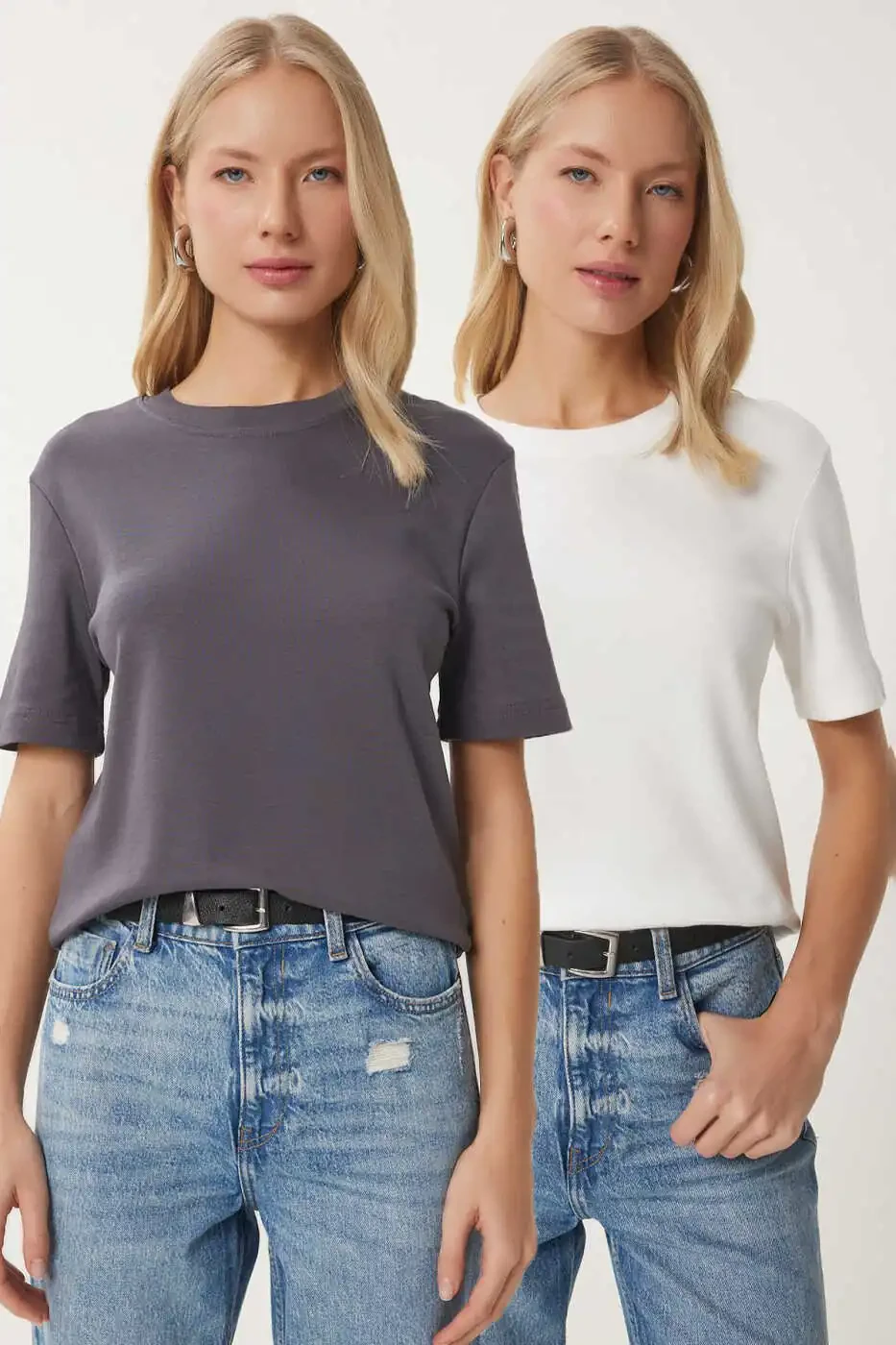 Встречайте женский комплект из 2 хлопковых базовых футболок дымчато-белого цвета AG00002, который дополнит вашу повседневную элегантность, сочетая в себе комфорт и качество! Этот замечательный комплект включает в себя две базовые футболки дымчатого и белого цветов, что позволит вам с легкостью пополнить свой гардероб незаменимыми вещами. Благодаря 100% хлопковой ткани эти футболки обладают мягкой текстурой, обеспечивая комфортное ношение в течение всего дня. Дышащая структура предотвращает потоотделение и позволяет вашей коже свободно дышать. Дизайн с круглым вырезом придает современный и стильный вид, а эластичная структура не сковывает движений. Имея длину изделия 59 см и длину рукава 23 см, эти футболки идеально сидят и прекрасно сочетаются с любой одеждой. Вы можете легко носить их с джинсами, юбками, шортами или леггинсами. Простой и элегантный дизайн подходит к любому стилю и может использоваться в повседневной жизни, на работе, в школе или во время занятий спортом. Комплект из 2 футболок позволяет сэкономить как время, так и деньги. Кроме того, быстрая и безопасная доставка до вашей двери гарантируется Trendyol. Не упустите эту возможность, закажите прямо сейчас и добавьте в свой гардероб элегантность и комфорт! Из-за разницы в освещении во время фотосъемки возможны незначительные различия в цвете. Рост модели 1,73 см, обхват груди 79 см, обхват талии 60 см и обхват бедер 90 см. Эти измерения могут дать вам представление о том, как изделие будет сидеть на вас.