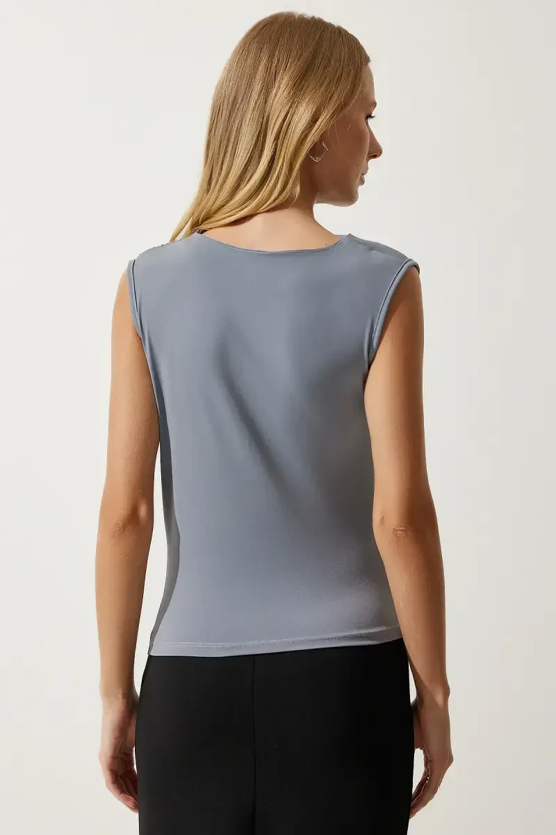 Женская дымчатая блузка с драпировкой, без рукавов, вязаная YU00015-Дымчатый
