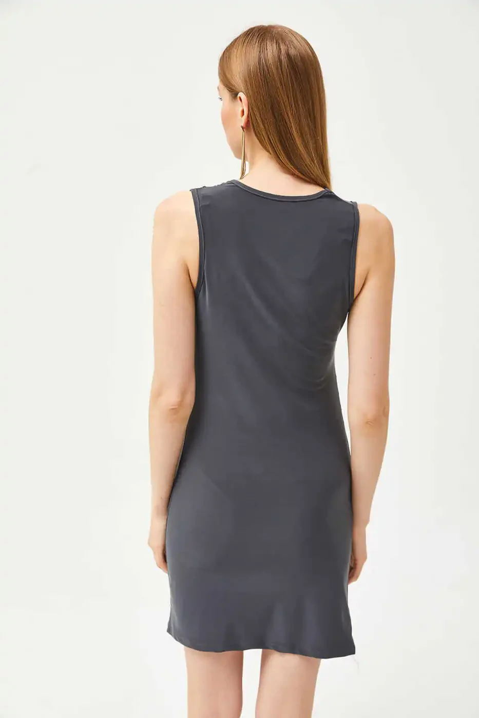 Ayollar uchun tutun rangli, drapajli, elastik mini ko'ylak sizning stilingizni to'ldiradigan ajoyib tanlovdir. Hoziroq buyurtma bering va stilingizni boshdan kechiring!